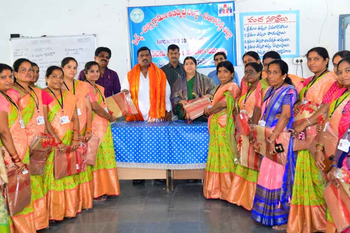 కెపి విఓఏ లకు ఏకరూప దుస్తులు పంపిణీ చేస్తున్న పటాన్చెరు శాసనసభ్యులు గూడెం మహిపాల్ రెడ్డి