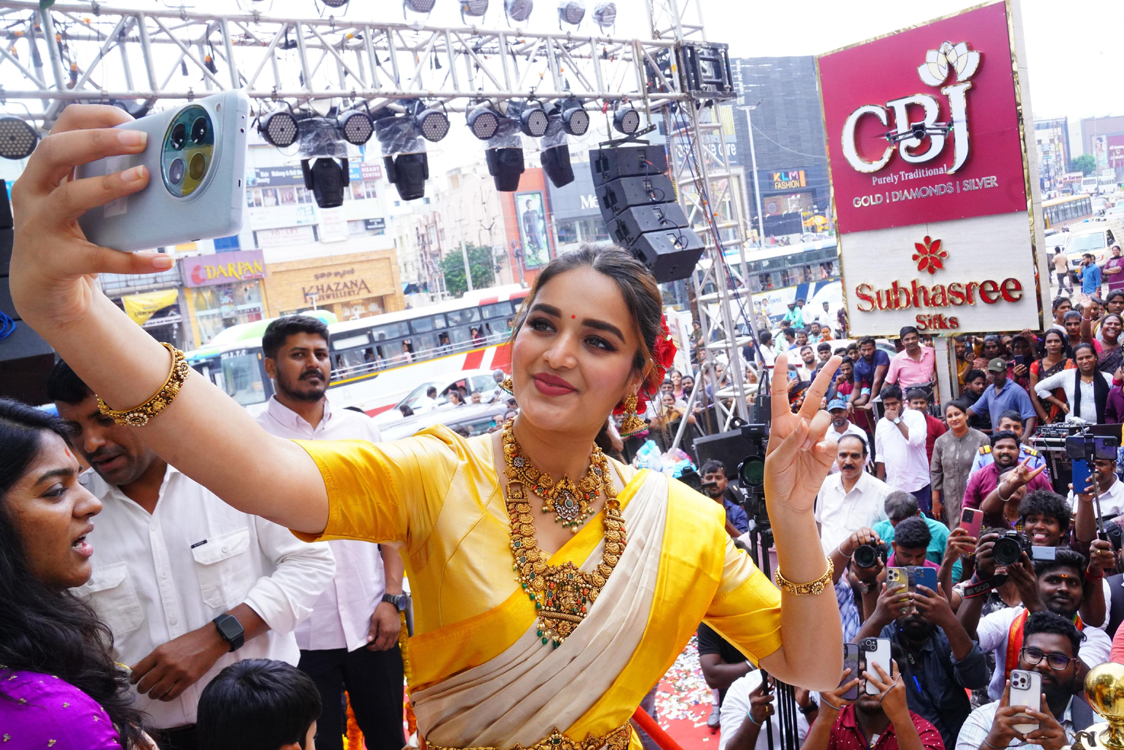 తనకు గోల్డ్ డైమండ్స్ అంటే ఎంతో ఇష్టమని సినీనటి నిధి అగర్వాల్ అన్నారు. చందానగర్ లో సిబిఐ గోల్డ్ డైమండ్స్ అండ్ శుభశ్రీ సిల్క్ షో రూమ్ ను ఆమె ప్రారంభించారు.అనంతరం నిధి అగర్వాల్ మాట్లాడుతూ ఇక్కడ లభించే సరికొత్త డిజైనర్లు వెరైటీలు సారీస్ చాలా డిఫరెంట్ గా ఉన్నాయని, నాకు శారీస్ అంటే చాల ఇష్టమని అని ,నాకు పట్టు శారీస్ అంటే చాల ఇష్టమని తెలిపారు .పవన్ కళ్యాణ్ తో హరి హర మల్లు మూవీ చేయడం చాల సంతోషంగా ఉందని తెలిపారు .గోల్డ్ అండ్ డైమండ్స్ తో పాటు శుభశ్రీ సిల్క్ ప్రారంభోత్సవంలో భాగం కావడం ఎంతో సంతోషకరమని తెలిపారు.ప్రజలందరికి బతుకమ్మ ,దసరా ,దీపావళి శుభాకాంక్షలు తెలిపారు.