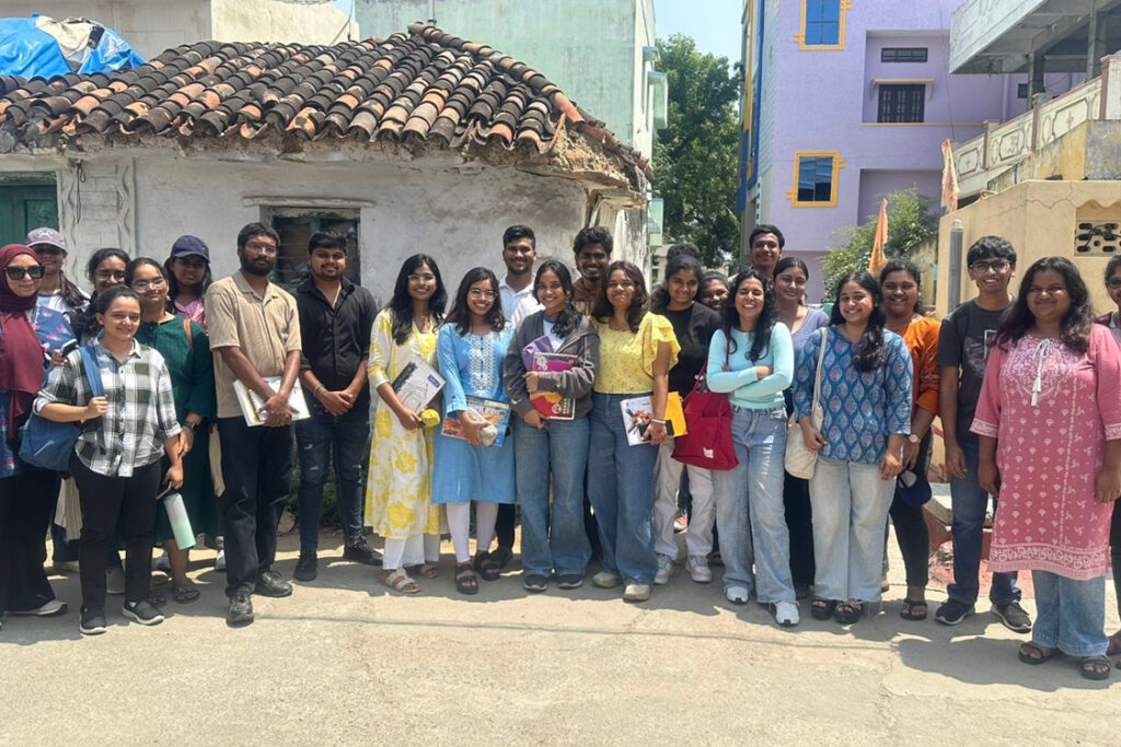 స్కెచింగ్ కార్యశాలలో ఆర్కిటెక్చర్ విద్యార్థులకు శిక్షకుల సూచన