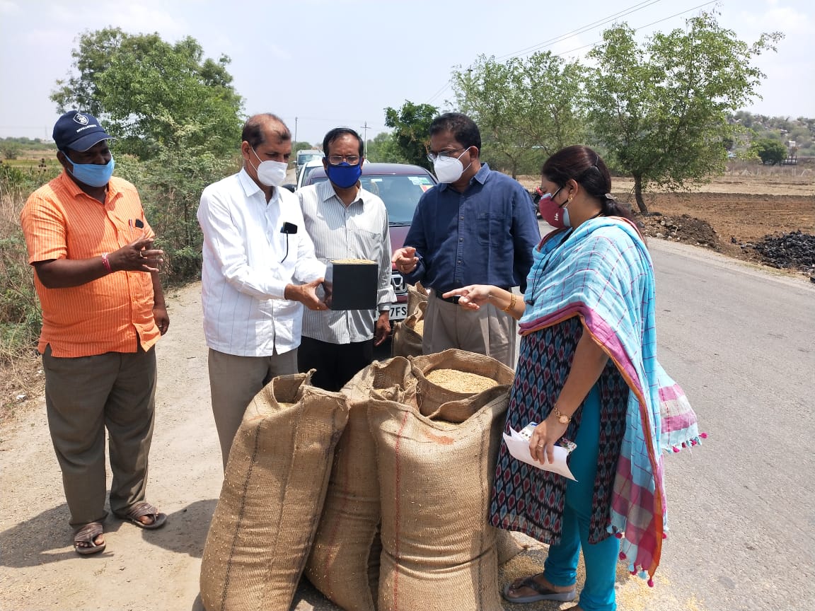 రైతులు ధాన్యం అమ్మడానికి తీసుకొని వచ్చే ముందు ఎండబెట్టి తేమశాతం 17 వచ్చిన తర్వాతనే కొనుగోలు కేంద్రానికి తీసుకురావాలని సంగారెడ్డి జిల్లా వ్యవసాయ శాఖ అధికారి నరసింహారావు అన్నారు. సోమవారం పటాన్ చెరు మండల పరిధిలోని లక్డారం గ్రామంలో కొనుగోలు కేంద్రాన్ని ఆయన సందర్శించారు. ఈ సందర్భంగా నరసింహారావు మాట్లాడుతూ రైతులు వ్యవసాయ విస్తరణ అధికారి ద్వారా తేమ శాతం పరీక్ష చేయించుకొని టోకెన్ ఇచ్చిన తర్వాత కొనుగోలు కేంద్రానికి దాన్యం తీసుకొని రావాలని అన్నారు. వర్ష సూచన ఉన్నట్లయితే పంట కోతను తదనుగుణంగా వాయిదా వేయాలి, కోసినట్లయితే పంటను టార్పాలిన్ పట్టాలతో కప్పి ఉంచాలన్నారు. రాబోయే వర్షాకాలంలో దృష్ట్యా రైతులు నాణ్యమైన విత్తనాలు మాత్రమే లైసెన్స్ ఉన్న డీలర్ల వద్ద కొనుగోలు చేయాలని సూచించారు. నకిలీ విత్తనాలు ఎవరైనా అమ్మినట్లయితే వారిపై చర్యలు తీసుకుంటామని హెచ్చరించారు. ఎవరైనా నకిలీ విత్తనాలు అమ్మితే రైతులు వ్యవసాయ శాఖ అధికారులకు సమాచారం ఇవ్వాలని సూచించారు. ఈ కార్యక్రమంలో ఎడిఎ బి.జె సురేష్ బాబు, ఎంఏఓ ఉష, ఏఈఓ దేవిసింగ్, కొనుగోలు కేంద్రం ఇంచార్జి రాజు, రైతులు పాల్గొన్నారు.