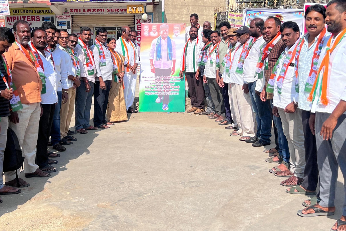 -పార్టీ శ్రేణులతో రాహుల్ గాంధీ, సీఎం రేవంత్ రెడ్డి చిత్రపటాలకు పాలాభిషేకం