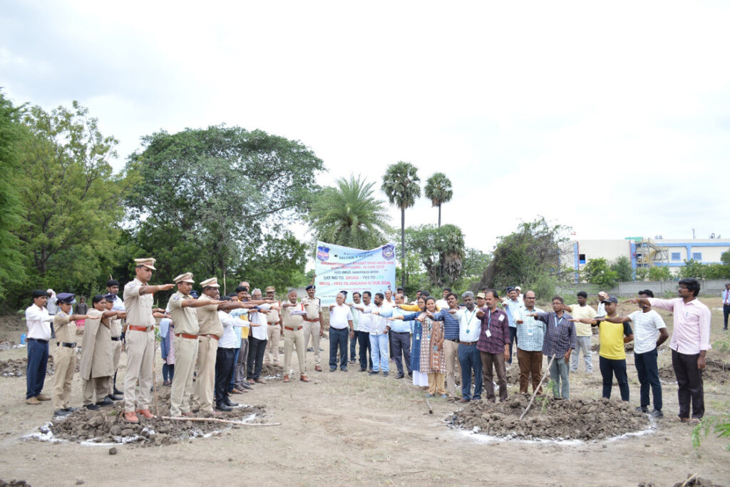 పర్యావరణ స్పృహను పెంపొందించడంతో పాటు మాదకద్రవ్యాల దుర్వినియోగ ప్రమాదాల గురించి అవగాహన పెంచడంలో భాగంగా పటాన్ చెరు పోలీసు విభాగం సోమవారం గీతం డీమ్డ్ విశ్వవిద్యాలయం ప్రాంగణంలో మొక్కలు నాటారు.డీఎస్పీ ఎస్. ప్రభాకర్, పటాన్ చెరు సర్కిల్ ఇన్ స్పెక్టర్ వినాయకరెడ్డిల నేతృత్వంలో, దాదాపు 30 మంది పోలీసు సిబ్బంది గీతం ప్రాంగణంలో మొక్కలు నాటారు. పరిశుభ్రమైన, ఆరోగ్యకరమైన, మాదకద్రవ్య రహిత సమాజాన్ని సూచిస్తూ రాష్ట్ర హరితీకరణకు దోహదపడటం లక్ష్యంగా ఈ కార్యక్రమం సాగింది.ఈ సందర్భంగా డీఎస్పీ ప్రభాకర్ మాట్లాడుతూ, మాదకద్రవ్య దుర్వినియోగం యొక్క తీవ్రమైన పరిణామాలను ప్రస్తావిస్తూ, మాదకద్రవ్య, సైకోట్రోపిక్ పదార్థాల హానికరమైన ప్రభావాలను వివరించారు. విద్యార్థులు, యువత అప్రమత్తంగా, బాధ్యతాయుతంగా ఉండాలని, మాదకద్రవ్య రహిత దేశాన్ని నిర్మించడానికి కట్టుబడి ఉంటాలని సూచించారు.ఈ కార్యక్రమంలో గీతం నాయకత్వం కూడా చురుకుగా పాల్గొంది. గీతం, హైదరాబాదు రెసిడెంట్ డైరెక్టర్ డీవీవీఎస్ఆర్ వర్మ, ఈఈసీఈ విభాగం అధ్యాపకులు ప్రొఫెసర్ కె.మంజునాథాచారి, ప్రొఫెసర్ పి.త్రినాథరావు; ఎస్టేట్ అధికారి డీవీఏ మోహన్ తదితరులు ఉన్నారు.పర్యావరణ, సామాజిక సమస్యలను పరిష్కరించడంలో చట్ట అమలు సంస్థలు, విద్యా సంస్థలు, సమాజం మధ్య భాగస్వామ్య బాధ్యతగా ఈ మొక్కలు నాటే కార్యక్రమాన్ని నిర్వహించారు.
