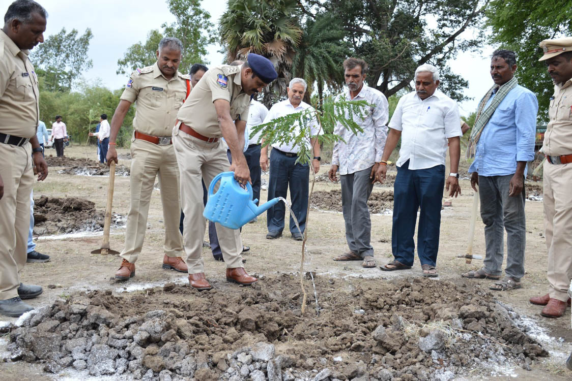 గీతంలో మొక్కలు నాటిన డీఎస్పీ, సీఐ