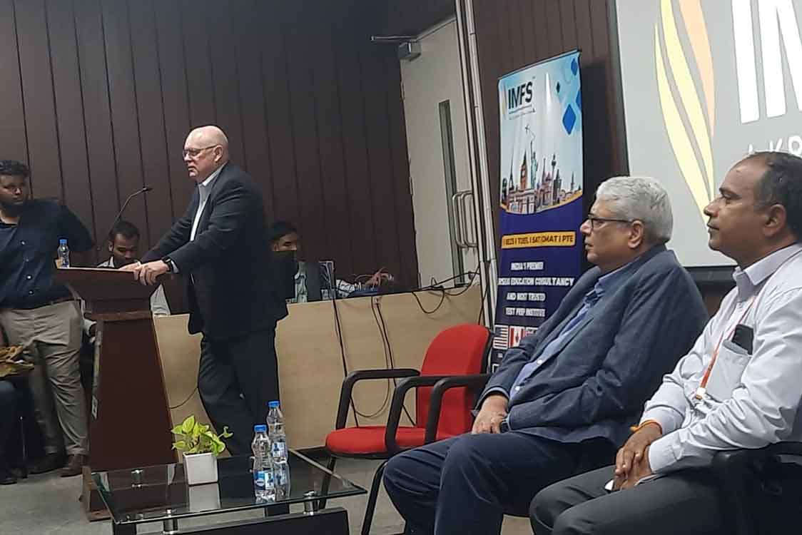 నార్త్ ఫ్లోరిడా విశ్వవిద్యాలయంలోని కాలేజ్ ఆఫ్ బిజినెస్ డీన్ రిచర్డ్ బుటిమర్ బుధవారం హెదరాబాద్లోని గీతం డీమ్డ్ విశ్వవిద్యాలయాన్ని సందర్శించి, అక్కడ ఉన్నత విద్యనభ్యసించడానికి గల అవకాశాలను వివరించారు. నార్త్ ఫ్లోరిడా వర్సిటీ నిర్వహిస్తున్న కోర్సులు, నాటి వ్యవధి, ఫీజు, చదువుతూనే సంపాదించే అవకాశాలు, కోర్సు పూర్తయ్యాక శిక్షణ, పనిచేయడానికున్న వ్యవధి, ఉద్యోగావకాశాలు వంటి పలు అంశాలను విడమరిచి చెప్పారు. దీనికి అదనంగా తమ వర్సిటీ ఉన్న జాక్సన్విల్లే పట్టణంలో నెలకొని ఉన్న అంతర్జాతీయ షిప్పింగ్, ఫిన్టాక్ కంపెనీలు, అక్కడ నివసిస్తున్న భారతీయుల గురించి చెప్పారు.10+2+3 విధానంలో చదివే భారతీయ విద్యార్థులకు యూఎస్ మాస్టర్స్ డిగ్రీలో చేరడానికి వారు చదివిన సబ్జెక్టులు, క్రెడిట్ ఆధారంగా ప్రవేశాలు కల్పిస్తామని బుటిమర్ తెలిపారు. అసలెనై ధ్రువీకరణలు సమర్పించడం ద్వారా ఇమ్మిగ్రేషన్, వీసా వంటి సమస్యలను అధిగమించొచ్చన్నారు.యూఎస్ లోని అధిక ఫీజుల కంటే కెరీర్ అవకాశాలకు ప్రాధాన్యత ఇవ్వాల్సిన ప్రాముఖ్యతను ఐఎంఎఫ్ఎస్ కన్సల్టెంట్ సంస్థ దక్షిణ భారత డెరైక్టర్ అజయ్ కుమార్ వేములపాటి నొక్కిచెప్పారు.