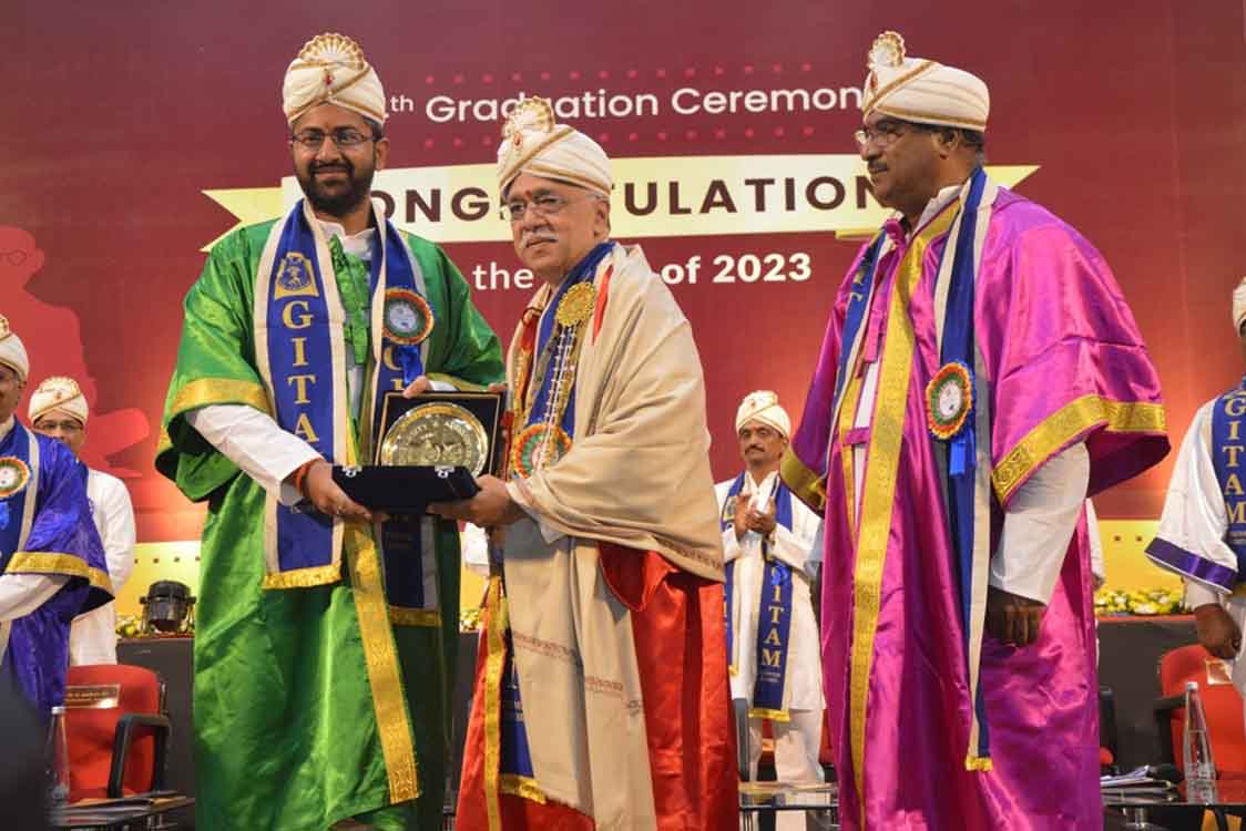 గీతం అధ్యక్షుడు ఎం.శ్రీభరత్ మాట్లాడుతూ, విద్యార్థులు కెరీర్లో ముందుకు సాగేందుకు తమ పరిజ్ఞానాన్ని పెంపొందించుకోవాలని సూచించారు.పట్టభద్రుల దినోత్సవంలో భాగంగా, తెలంగాణ శాసన మండలి సభ్యుడు, తెలుగు సాహిత్య ఔన్నత్యానికి విశేష కృషిచేసిన ప్రఖ్యాత రచయిత, సాహిత్య అకాడమీ అవార్డు గ్రహీత శ్రీ గోరటి వెంకన్నకు గౌరవ డాక్టరేట్ (డీ.లిట్) ఇచ్చి సత్కరించారు. ఎంఏ తెలుగు అత్తెసరు మార్కులతో ఉత్తీర్ణుడైన తనను గీతమ్ గౌరవ డాక్టరేట్తో సత్కరిస్తుందని తెలిసిన తన అమ్మ, మంచి ఔషధాలు రాయమని సలహా ఇచ్చిందని, అటువంటి గ్రామీణ నేపథ్యం తనదన్నారు. గీతనక్కు కృతజ్ఞతలు తెలియజేశారు. యురేనియం అవసరంలేని శక్తిని సృష్టించాలని గీతం విద్యార్థులకు ఆయన సూచించారు. శాస్త్ర విజ్ఞానం ఎంత పెరిగినా సాహిత్యం పాత్ర ఎప్పటికీ తరగదని, కవిత్వం సమాజమంతా బాగుండాలని కోరుకుంటుందన్నారు.
