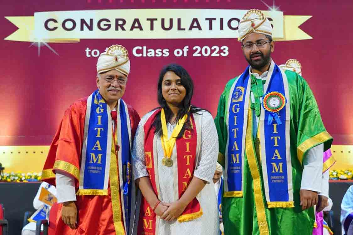 గీతం హైదరాబాద్ ప్రాంగణంలో 1,265 మంది విద్యార్థులు ఇంజనీరింగ్, మేనేజ్ మెంట్, సైన్స్, ఫార్మసీ, హ్యుమానిటీస్ వంటి వివిధ విభాగాలలో డిగ్రీలు పొందడానికి అర్హత సాధించగా, 1,141 మంది విద్యార్థులు, 10 మంది పరిశోధకులు వ్యక్తిగతంగా హాజరై పట్టాలను స్వీకరించారు. అత్యుత్తమ ప్రతిభ కనబరచిన 21 మంది విద్యార్థులు బంగారు పతకాలు అందుకున్నారు. గీతం విద్యార్థులు నెత్తికత విషయంలో రాజీపడకుండా సమాజాభివృద్ధికి, దేశ ప్రగతికి కట్టుబడి ఉంటామని ప్రతిజ్ఞ చేశారు. గీతం రిజిస్ట్రార్ డాక్టర్ డి. గుణశేఖరన్ వందన సమర్పణతో ఈ కార్యక్రమం ముగిసింది.