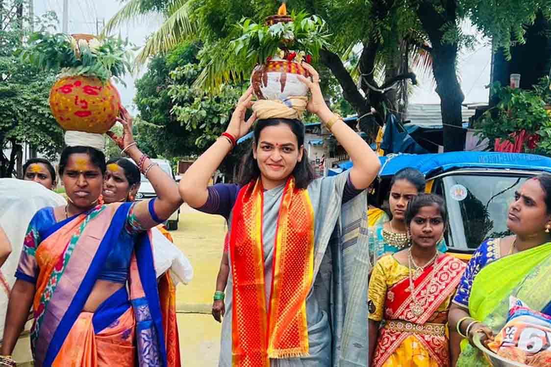 ఆషాఢమాసం బోనాల ఉత్సవాల్లో భాగంగా మియాపూర్ నడిగడ్డ తాండ లో మహిళలు అమ్మవారికి బోనాలు సమర్పించిన కార్యక్రమంలో బీజేపీ యువ మోర్చా రాష్ట్ర నాయకురాలు కసిరెడ్డి సింధు రెడ్డి బోనం ఎత్తుకొని మహిళా భక్తులతో పాటు పాల్గొన్నారు ఈ సందర్భంగా భారీ కోలాహలం పోతరాజుల నృత్యాలు డప్పుల మోతలతో ఊరేగింపు నిర్వహించారు. ఈ కార్యక్రమంలో స్థానిక మహిళలతో పాటు బోనాల ఉత్సవాలు నడిగడ్డ తండ, మియాపూర్ మహిళలు అమ్మవారికి బోనాలు సమర్పించారు. ఈ సందర్భంగా భారీ కోలాహలం పోతరాజుల నృత్యాలు డప్పుల మోతలతో ఊరేగింపు నిర్వహించారు. ఈ కార్యక్రమంలో స్థానిక మహిళలతో పాటు రఘునాథ్ రెడ్డి, ఎడ్ల ఆంజనేయులు చందు, వంశీధర్ రెడ్డి, శివ రత్నాకర్, రాజేశ్వర్, తదితరులు పాల్గొన్నారు