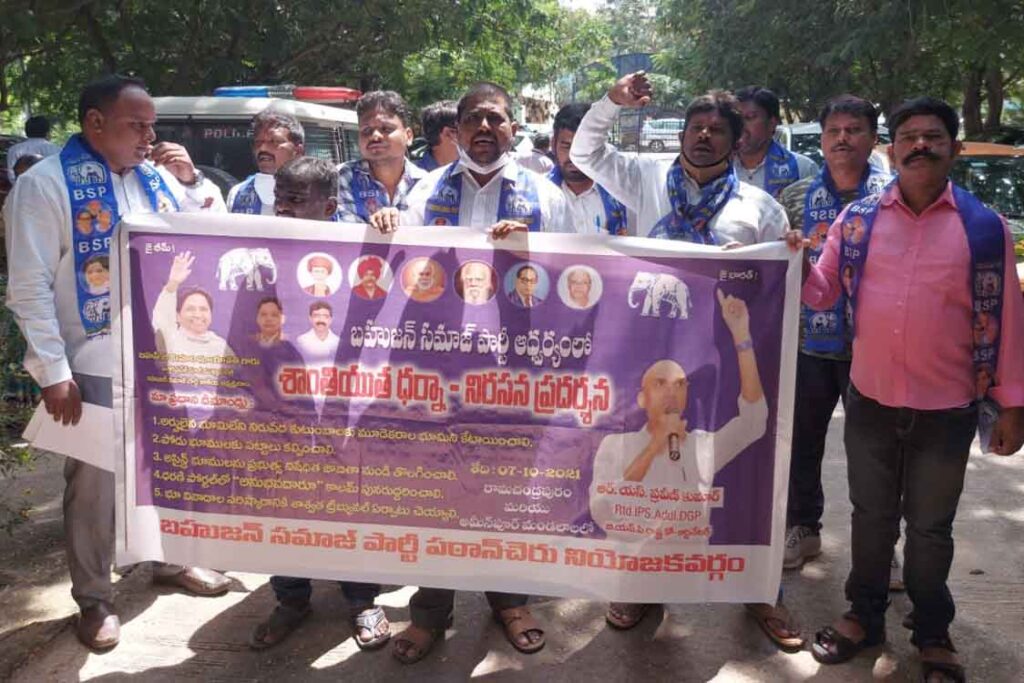పేదలకు భూములు పంచాలంటూ రామచంద్రాపురం,అమీన్ పూర్ ఎమ్మార్వో కార్యాలయాల ఎదుట బీఎస్పీ నిరసన కార్యక్రమం
