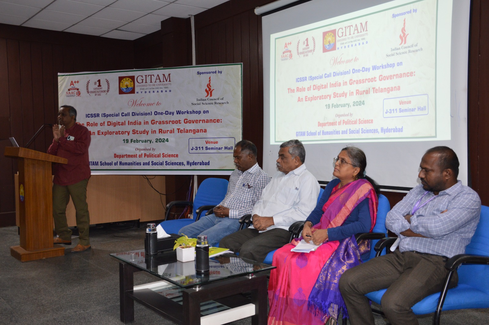 పటాన్‌చెరు ,మనవార్తలు ప్రతినిధి : గ్రామీణ ప్రాంతాలలోని పాలనపై డిజిటల్ ఇండియా ప్రభావం, తెలంగాణలో అన్వేషణాత్మక అధ్యయనం అనే అంశంపై గీతం డీమ్డ్ విశ్వవిద్యాలయం హైదరాబాద్ లో ఒకరోజు కార్యశాలను నిర్వహించినట్టు ప్రాజెక్టు డెరైక్టర్, గీతం అధ్యాపకుడు డాక్టర్ గుర్రం అశోక్ బుధవారం విడుదల చేసిన ప్రకటనలో వెల్లడించారు. ఇండియన్ కౌన్సిల్ ఆఫ్ సోషల్ సైన్సెస్ రీసెర్చ్ (ఐసీఎస్ఎస్ఆర్) సౌజన్యంతో దీనిని నిర్వహించినట్టు తెలిపారు.పాలిటికల్ సైన్స్ విభాగం ఆధ్వర్యంలోని నిర్వహించిన ఈ కార్యక్రమంలో గీతం స్కూల్ ఆఫ్ […]