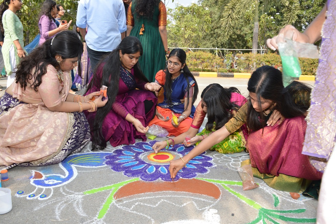 ఉత్సాహభరితమైన అలంకరణలు, సాంప్రదాయ ఆటపాటలతో పాటు విద్యార్థులు ఆనంద క్షణాలను అనుభవించే వాతావరణంలో ఈ వేడుకలు సాగాయి. విద్యార్థులు, అధ్యాపకులు, సిబ్బంది తదితరులు రంగు రంగుల సంప్రదాయ దుస్తులతో తరలి రావడంతో ప్రాంగణమంతా వర్ణశోభితమైంది. మన సంప్రదాయాలను గౌరవించడమే కాకుండా, విద్యార్థుల సృజనాత్మక నైపుణ్యాలకు వెలికితీసే వేదికగా కూడా ఈ వేడుకలు ఉపకరించాయి.ముగ్గుల (రంగోలి) పోటీ, ఎద్దుల బండి, సహజ పద్ధతిలో చెరుకు రసం వెలికితీసే పరికరం ఈ ఉత్సవాలలో ప్రధాన ఆకర్షణగా నిలిచి, పలువురిని ఆకట్టుకున్నాయి. మనదేశమే కాకుండా ప్రపంచవ్యాప్తంగా వివిధ ప్రాంతాల నుంచి వచ్చి, గీతంలో విద్యనభ్యసిస్తున్న విద్యార్థులు కూడా పాల్గొన్న మోకు పందెం (టగ్-ఆఫ్ వార్) పోటీలు వారి ఉత్సాహాన్ని రెట్టింపు చేశారు.