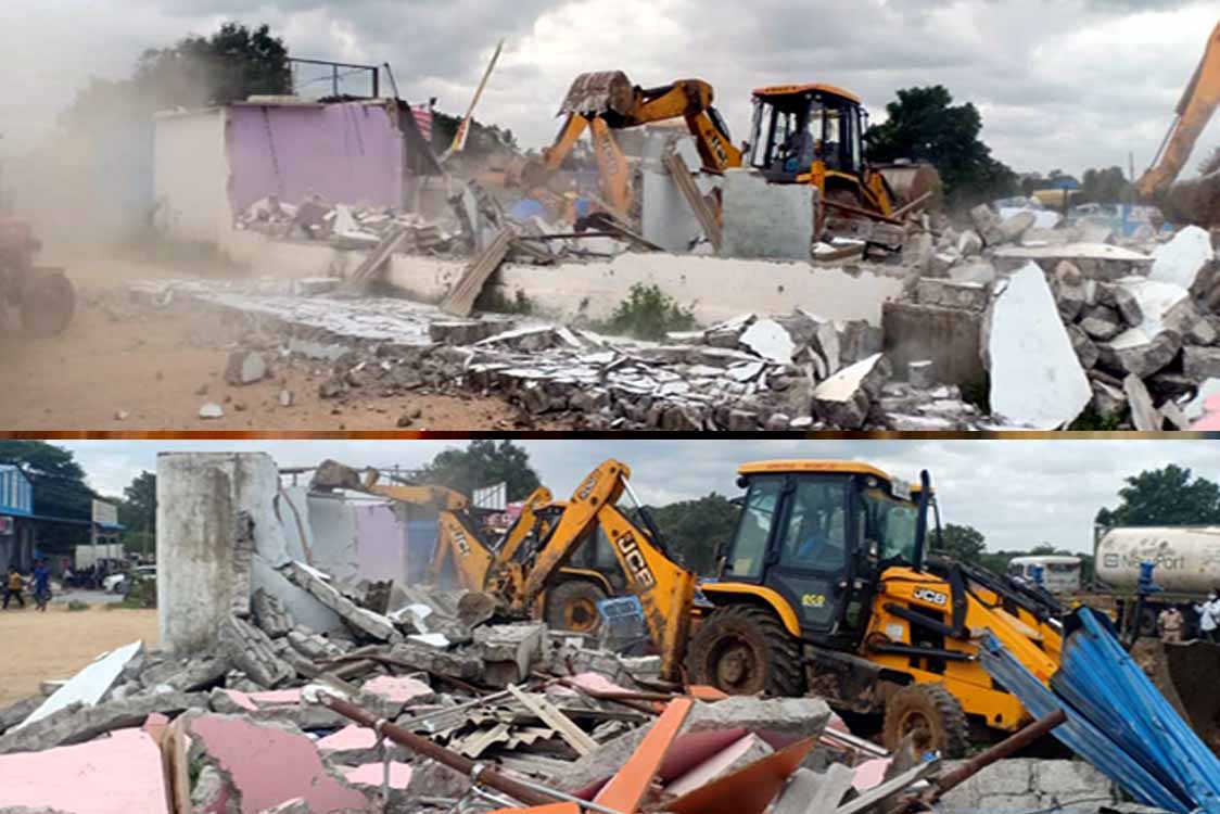 067 జీవో ప్రకారం హైకోర్టు ఆదేశాల మేరకు 10 జేసీబీలతో 20 ట్రాక్టర్ల సహాయంతో బారి బందోబస్తుతో కూల్చివేస్తున్నామని పేర్కొన్నారు. ఈ రహదారి పైన ఉన్న మిగతా నిర్మాణాలకు కూడా నోటీసులు జారీ చేసి వాటిని కూడా కూల్చివేస్తామని తెలిపారు. ఈ కార్యక్రమంలో పంచాయతీ సెక్రెటరీలు, పోలీసు అధికారులు పాల్గొన్నారు.