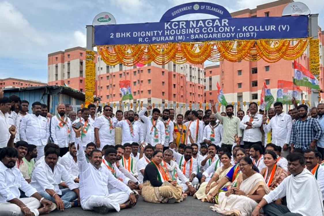 ప్రభుత్వం నిర్మిస్తున్న డబుల్ బెడ్ రూం ఇళ్ళను మొదటి ప్రాధాన్యత స్థానికులకే కల్పించాలని పటాన్చెరు నియోజకవర్గ కాంగ్రెస్ పార్టీ ఇంచార్జ్ కాట శ్రీనివాస్ గౌడ్ డిమాండ్ చేశారు. సంగారెడ్డి జిల్లా పటాన్ చెరు నియోజకవర్గంలోని కొల్లూరు లోని డబుల్ బెడ్ రూమ్ ఇళ్ళు నిర్మించిన ప్రాంతంలో కాంగ్రెస్ పార్టీ శ్రేణులతో కలిసి శ్రీనివాస్ గౌడ్ మీడియా సమావేశం నిర్వహించారు. సీఎం కేసీఆర్ కొల్లూరులోని డబుల్ బెడ్ రూమ్ ప్రారంభోత్సవం సందర్భంగా స్థానిక కాంగ్రెస్ కౌన్సిలర్లు మయూరి రాజుగౌడ్, రాంసింగ్ నాయక్ లకు ముందుగా అపాయింట్మెంట్ ఇచ్చి, పాసులు కూడా అందజేసినప్పటికీ సీఎం కేసీఆర్ ని కలవనీయకుండ వారిని ముందస్తు హౌస్ అరెస్ట్ చేసి అవమానించడం విడ్డూరమన్నారు. రాష్ట్ర ప్రభుత్వానికి కొల్లూరు ప్రజలందరూ సహకరిస్తేనే డబుల్ బెడ్ రూమ్ నిర్మాణాలు చేపట్టడం జరిగిందని గుర్తు చేశారు. సహకరించిన స్థానిక ప్రజలకు డబుల్ బెడ్ రూములు కచ్చితంగా ఇవ్వాలని డిమాండ్ చేశారు . 50% డబుల్ బెడ్ రూమ్ ఇండ్లను స్థానికులకు అందజేసిన తర్వాతనే,మిగిత ప్రాంత పేదలకు ఇవ్వాలన్నారు . పేద ప్రజల తరఫున స్థానిక ఎమ్మెల్యే మహిపాల్ రెడ్డి రాష్ట్ర ప్రభుత్వంపై గళం విప్పాలన్నారు. స్థానిక ప్రజలకు కాంగ్రెస్ పార్టీ అన్ని విధాలుగా అండగా ఉంటుందని హామి ఇచ్చారు . పేద ప్రజల మీద ప్రేమతో డబుల్ బెడ్ రూములను సీఎం ప్రారంభించలేదని, ఇది ఎలక్షన్ స్టంట్ లో భాగమేనని కాటా విమర్శించారు.