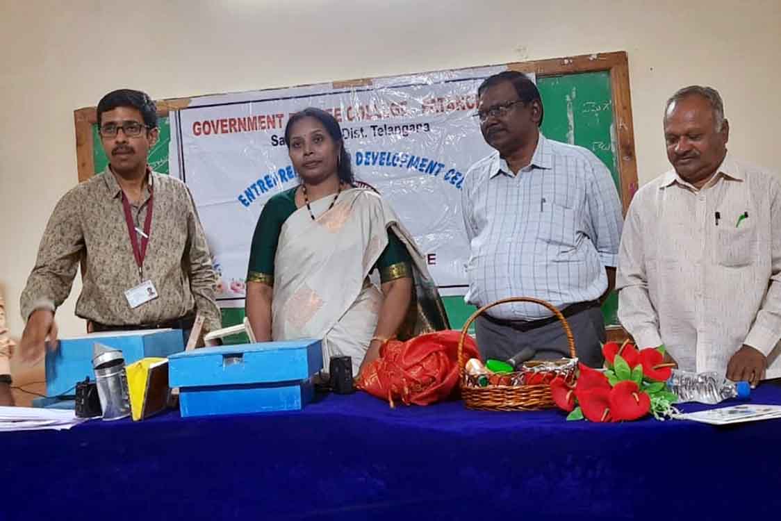 పటాన్ చెరు పట్టణంలోని డాక్టర్ అబ్దుల్ కలాం ప్రభుత్వ డిగ్రీ కళాశాలలో ఎంటర్ప్రైన్యూర్షిప్ డెవలప్మెంట్ సెల్ వారి ఆధ్వర్యంలో తేనెటీగల సాగు, దాని యొక్క వాణిజ్య ఉపయోగాలు అనే అంశంపై బుధవారం విద్యార్థులకు సదస్సును నిర్వహించారు. ఈ సదస్సుకు జయశంకర్ వ్యవసాయ విశ్వవిద్యాలయ సహాయ ఆచార్యురాలు డాక్టర్ సునీత ముఖ్య అతిథిగా హాజరై, మాట్లాడుతూ… తేనెటీగల జాతి అంతం జరిగితే మానవ మనుగడకు ప్రమాదం అని గుర్తు చేశారు. ప్రిన్సిపల్ డాక్టర్ రాజేంద్రప్రసాద్ మాట్లాడుతూ.. పర్యావరణ అనుకూల వ్యాపారాలు అవకాశాలను అందిపుచ్చుకోవాలని పిలుపునిచ్చారు. తేనె పెంపకంలో వెలువడే మైనం, ప్రోపోలిస్ యొక్క ఆదాయ వనరుల అవకాశాలను, ఈ కార్యక్రమ నిర్వాహణ కర్త వీరేందర్ విద్యార్థులకు వివరించారు. తక్కువ వ్యవధి, పెట్టుబడితో చేయగల తేనెటీగల పెంపకం ఎంతో ఉపయోగకరమని వైస్ ప్రిన్సిపాల్ అల్లం రెడ్డి అభిప్రాయపడ్డారు. పరపరార్గ సంపర్కం వలన పంటలలో అధిక దిగుబడి పొందవచ్చు అని డాక్టర్ శ్రీనివాసరావు తెలిపారు. ఈ కార్యక్రమంలో వ్యవసాయ విశ్వవిద్యాలయ అధికారులు డాక్టర్ ఉదయ్, డాక్టర్ స్నేహలత, కళాశాల ఆచార్యులు డాక్టర్ రాజిరెడ్డి, రాధిక, కృష్ణ, రవీందర్, హరిత, జానయ్య, స్వప్న, డాక్టర్ భగ్గు, తదితరులు పాల్గొన్నారు.