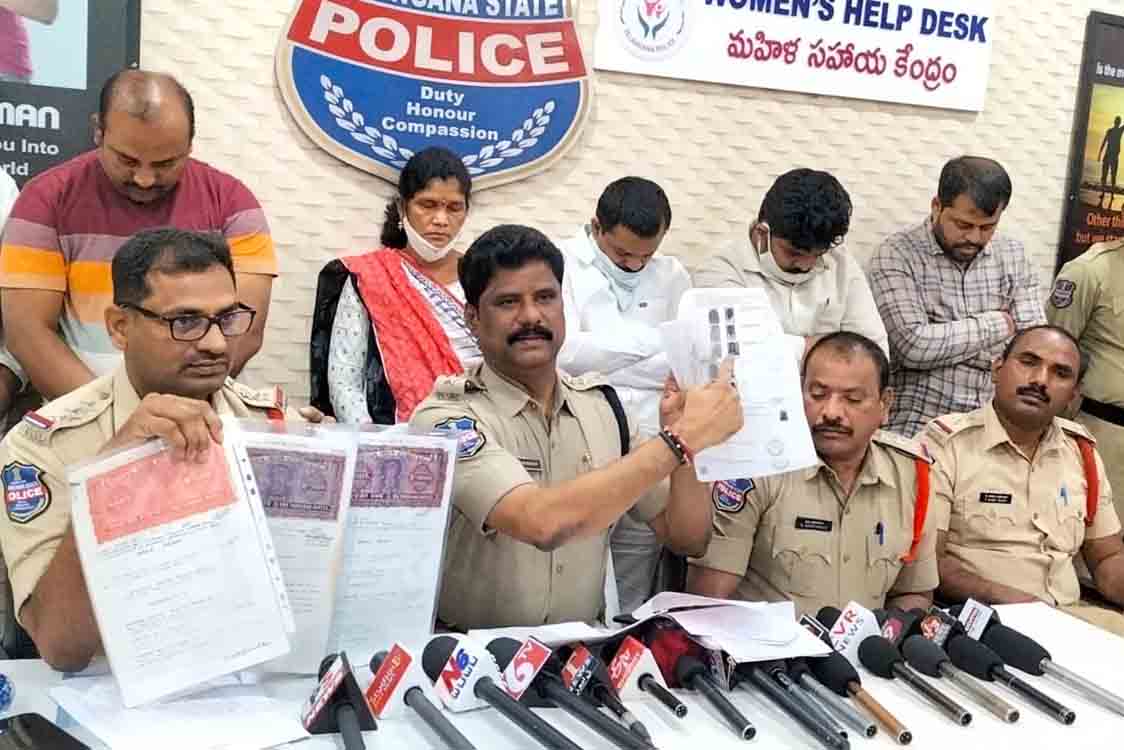చనిపోయిన వ్యక్తి పేరును వాడుకుంటూ నకిలీ డాక్యుమెంట్లు సృష్టించి భూవిక్రయాలు చేస్తూ కోట్లాది రూపాయాల అక్రమాలకు పాల్ప డుతున్న ఘరానా ముఠా సభ్యులను పోలీసులు చాకచక్యంగా అదుపు లోకి తీసుకున్నారు, వారి వద్ధ నుండి 27 లక్షల 56వేల రూపాయల నగదు ను స్వాధీనం చేసుకొని నిందితులను కటకటాల వెనక్కి నెట్టారు. పటాన్ చెరు డీఎస్పీభీంరెడ్డి తెలిపిన వివరాల ప్రకారం పటాన్ చెరు నియోజకవర్గంలోని ఇస్నాపూర్ శివారులోని సర్వేనెంబర్ 251 లోని దాదాపు 880 చదరపు గజాల స్థలం మధీనా గూడకు చెందిన యం.సునంద 2000సంవత్సరంలో కొనుగోలు చేసింది. కాగా ఇటీవల తన స్ధలాన్ని కొందరు కబ్జా చేసి కాంపౌండ్ వాల్ నిర్మాణం చేయటంతో ఆమె పటాన్ చెరు పోలీసులను ఆశ్రయించింది.
