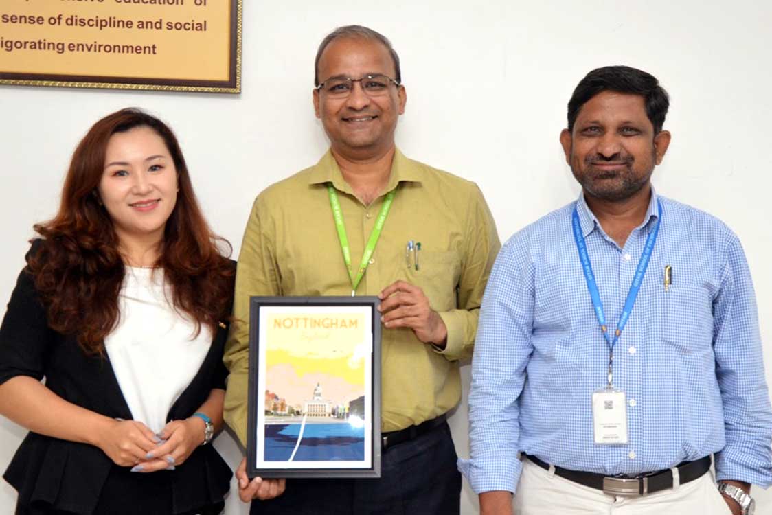 గీతం స్కూల్ ఆఫ్ సెన్స్డ్ వచ్చే విద్యా సంవత్సరం నుంచి బ్రిటన్లోని నాటింగ్హామ్ విశ్వవిద్యాలయం సౌజన్యంతో నాలుగేళ్ళ బీఎస్సీ ఫుడ్ సెన్స్ అండ్ టెక్నాలజీ కోర్సును నిర్వహించనున్నారు . ఈమేరకు నాటింగ్హాహామ్ వర్సిటీకి చెందిన భాగస్వామ్య సంబంధాలు , ప్రాజెక్టుల విభాగాధిపతి అన్నే యిమెంగ్ ఆన్తో బుధవారం ప్రాథమిక చర్చలు జరిగాయి . ఈ కోర్సులో చేరిన విద్యార్థులు రెండేళ్ళ పాటు గీతమ్ , ఆ తరువాత బ్రిటన్లో విద్యాభ్యాసం చేసేలా ఒప్పందం కుదుర్చుకోవాలని సంకల్పించారు . ముందుగా , పాఠ్యాంశాలను ఖరారు చేయాలని , రెండు సంస్థల ప్రమాణాలకు సరిపోయేలా బ్రిడ్జ్ కోర్సును రూపొందించి , , అపెన ఒక అవగాహనా ఒప్పందాన్ని ( ఎంవోయూ ) కుదుర్చుకోవాలని నిర్ణయించారు .