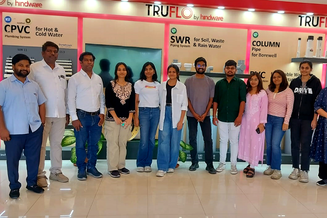 గీతం స్కూల్ ఆఫ్ ఆర్కిటెక్చర్ లోని ఏడవ సెమిస్టర్ విద్యార్థులు మంగళవారం ఇస్నాపూర్ లోని హింద్ వేర్ ఫ్యాక్టరీని సందర్శించి, వారి ట్రూఫ్లో ఉత్పత్తులతో సహా పర్యావరణ హిత తయారీ పద్ధతుల గురించి అవగాహన ఏర్పరచుకున్నారు. తమ పాఠ్యాంశాలలో భాగమైన వర్కింగ్ డ్రాయింగ్ లపై దృష్టి సారించడమే గాక, ఆర్కిటెక్చరల్ మెటీరియల్స్ ఆచరణాత్మక వినియోగ విధానాలను స్వయంగా గ్రహించారు. మరీ ముఖ్యంగా ఐజీబీసీ ప్లాటినం రేటింగ్ పొందిన పర్యావరణ హిత తయారీ పద్ధతుల గురించి తెలుసుకున్నారు. పర్యావరణ స్థిరత్వాన్ని ప్రోత్సహించే లక్ష్యంతో సమకాలీన ఆర్కిటెక్చర్ లో అవసరమైన అంశాలు, స్థిర తయారీ పద్ధతులు, డిజైన్ ప్రక్రియలపై లోతైన అవగాహన ఏర్పరచుకున్నారు.ఈ సందర్భంగా విద్యార్థులు మట్టి, వ్యర్థాలు, వర్షం పైపులను, వాటి విభిన్న విధులు, నిర్మాణ రూపకల్పనలో తీసుకుంటున్న మెళకువలను పరిశీలించారు. పీవీసీ. యూపీవీసీ, సీపీవీసీతో సహా వివిధ రకాల పైపుల క్లిష్టమైన తయారీ ప్రక్రియలను వీక్షించారు. నిర్మాణ పదార్థాలపై లోతైన అవగాహనను వారు పెంపొందించుకున్నారు.హింద్ వేర్ లిమిటెడ్ సినియర్ మేనేజర్ సురేష్ కుమార్ తన నైపుణ్యాన్ని, విస్తృత అవగాహనను విద్యార్థులతో పంచుకున్నారు. గీతం అధ్యాపకులు ముక్తీశ్వర్, జబ్బార్ అహ్మద్, స్నిగ్ధ రాయ్ తదితరులు విద్యార్థులకు పరిశ్రమ సందర్శన అనుభవాన్ని అందించారు.ఈ పారిశ్రామిక సందర్శన తమ విద్యార్థుల విద్యా ప్రయాణంలో ఒక మైలురాయని, ఇది వాస్తుశిల్పంలో స్థిరమైన రూపకల్పన పద్ధతుల ప్రాముఖ్యతను బలపరుస్తుందని ముక్తీశ్వర్ అభిప్రాయపడ్డారు. హింద్ వేర్ యాజమాన్యానికి గీతం తరఫున కృతజ్జతలు తెలియజేశారు.