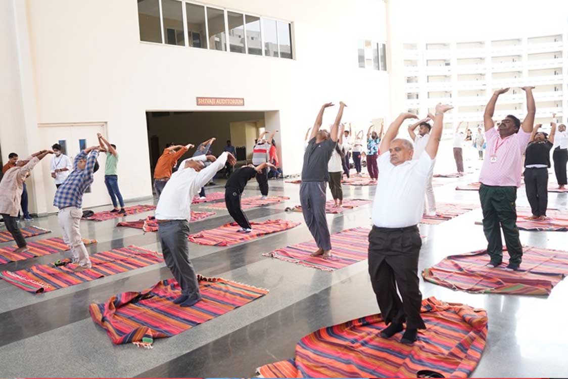 గీతం డీమ్డ్ విశ్వవిద్యాలయం , హైదరాబాద్లో మంగళవారం అంతర్జాతీయ యోగా దినోత్సవాన్ని ఘనంగా నిర్వహించారు . ‘ మానవత్వం కోసం యోగా ‘ అనే ఇతివృత్తంతో నిర్వహించిన ఈ కార్యక్రమంలో పలువురు విద్యార్థులు , అధ్యాపకులు , సిబ్బంది ఉత్సాహంగా పాల్గొన్నారు . తొలుత , గీతం హైదరాబాద్ రెసిడెంట్ డెరైక్టర్ డీవీవీఎస్ఆర్ వర్మ ప్రసంగంతో ఈ వేడుకలు ప్రారంభమయ్యాయి . యోగా గురించి , రోజువారీ జీవితంలో యోగ సాధన చేయడం వలన కలిగే ప్రయోజనాలను ఆయన వివరించారు . ఆరోగ్యకరమైన శరీరం , మనస్సుల కోసం , అలాగే పనిలో ఒత్తిడిని తగ్గించడానికి నిత్యం యోగ సాధన ఎలా ఉపకరిస్తుందో ఆయన విడమరిచి చెప్పారు .