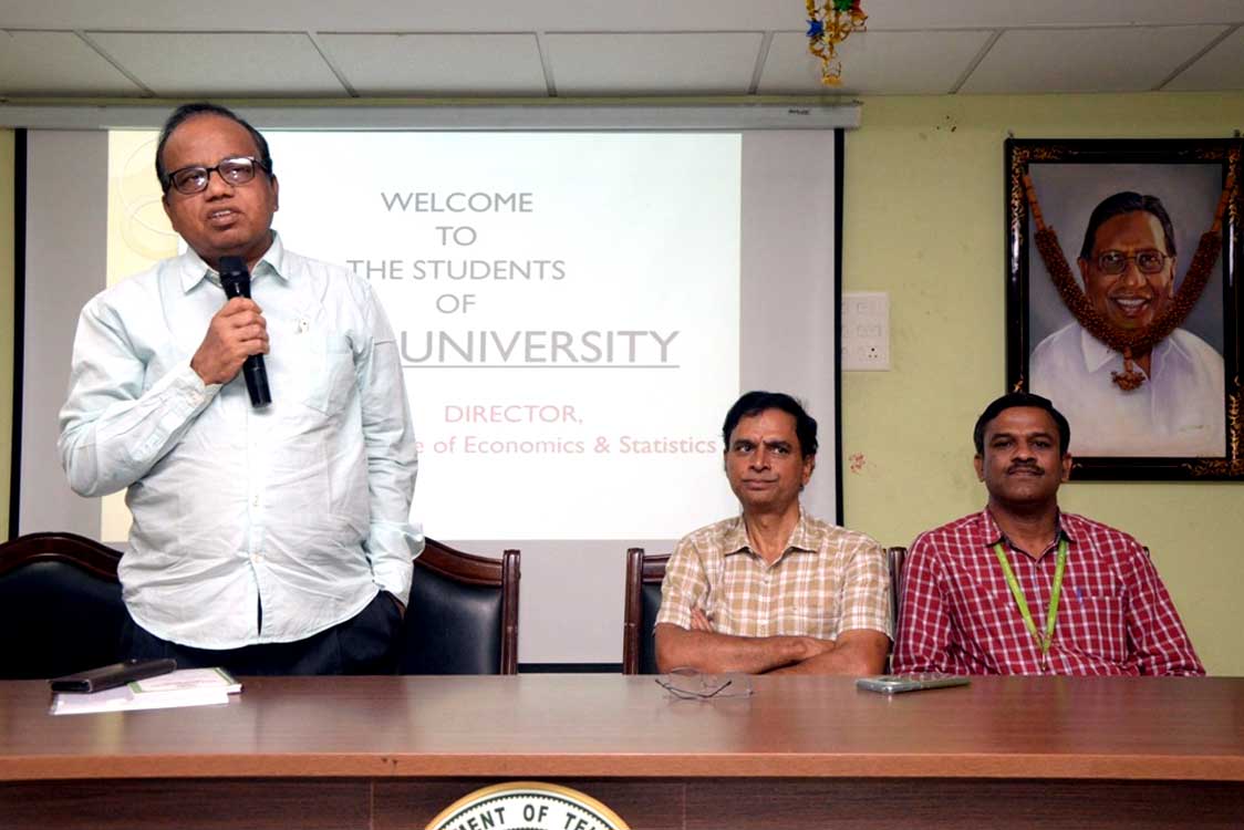 పరిశ్రమ-విద్యాసంస్థల సమన్వయంతో భాగంగా, గీతం స్కూల్ ఆఫ్ సెన్స్డ్ ని బీఎస్సీ స్టాటిస్టిక్స్, డేటా సెర్చ్: విద్యార్థులు గురువారం ఖైరతాబాద్ (హెదరాబాద్ )లోని చెరెక్టరేట్ ఆఫ్ ఎకనామిక్స్ అండ్ స్టాటిస్టిక్స్ (డీఈఎస్)ను సందర్శించారు. గణితశాస్త్ర విభాగం ప్రొఫెసర్ బి.ఎం. నాయుడు మార్గదర్శనంలో, డాక్టర్ శివారెడ్డి తేరి, డాక్టర్ పి.నరసింహ స్వామిల సమన్వయంలో నిర్వహించిన ఈ కార్యక్రమంలో దాదాపు 60 నుండి విద్యార్థులు పాల్గొన్నారు. డీఈఎస్. డెరెక్టర్ జి.దయానందం గీతం విద్యార్థులతో ముఖాముఖి నిర్వహించి, తమ సంస్థ ప్రభుత్వానికి అందిస్తున్న సేవలను వివరించారు. రాష్ట్ర ఆర్థిక వ్యవస్థకు సంబంధించిన అనేక రంగాలలో మార్గనిర్దేశనం చేయడానికి, వారి అవసరాలు తీర్చడానికి క్రమబద్ధమైన విషయ సేకరణ, సంకలనం, విశ్లేషణ చేస్తున్నట్టు చెప్పారు. తెలంగాణ ప్రభుత్వం, కేంద్ర ప్రభుత్వ అవసరాలను బట్టి డెరెక్టరేట్ తాత్కాలిక అధ్యయనాలను నిర్వహిస్తోందన్నారు. వీటితో పాటు జనాభా వివరాలు, ఆరోగ్యం, వర్షపాతం, పశుసంవర్ధక సేవలు, రాష్ట్ర ఆదాయం, పరిశ్రమలు, విద్యుత్ వినియోగం, రవాణా, బ్యాంకులు, విద్య, ప్రజా పంపిణీ వంటి పలు సేవలను కూడా డీఈఎస్ అందిస్తున్నట్లు చెరెక్టర్ వివరించారు. విద్యార్థుల సందేహాలను నివృత్తి చేశారు.తెలంగాణ రాష్ట్ర ప్రణాళికాభివృద్ధి సంస్థ (టీఎస్డీపీఎస్) ఈచో ఎ. రామకృష్ణ, నాగరాజు, డీఈఎస్ డీఎస్ భారతి, టార్క్ ఏడీజీ జి.శ్రీనివాసరెడ్డి తదితరులు కూడా గీతం విద్యార్థులను ఉద్దేశించి ఉపన్యసించారు.