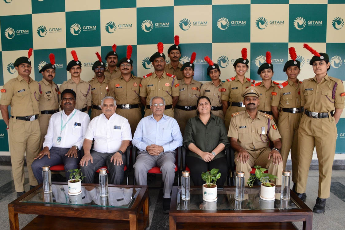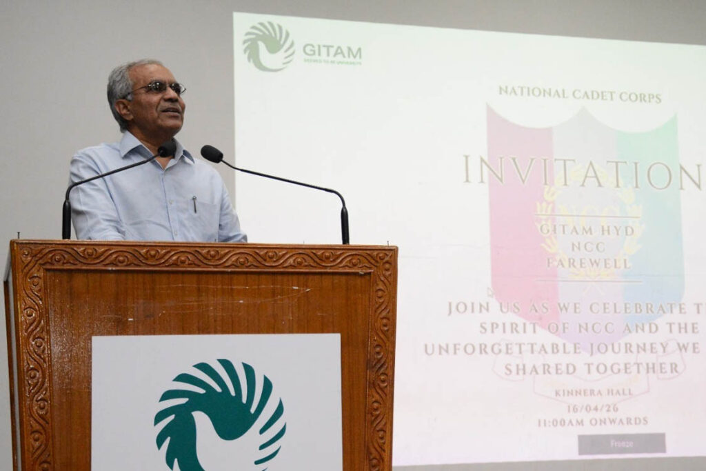 హైదరాబాదులోని గీతం డీమ్డ్ విశ్వవిద్యాలయంలో పట్టభద్రులవుతున్న ఎన్.సీ.సీ. క్యాడెట్లకు గురువారం హృదయపూర్వక వీడ్కోలు కార్యక్రమాన్ని నిర్వహించారు. క్రీడలు, ఎన్.సీ.సీ. డైరెక్టరేట్ నిర్వహించిన ఈ కార్యక్రమంలో, గీతంతో పాటు, దేశానికి వారు అందించిన ఆదర్శప్రాయమైన సేవ, అంకితభావం, క్రమశిక్షణలను ఈ సందర్భంగా గుర్తుచేసుకున్నారు.ముఖ్య అతిథిగా పాల్గొన్న గీతం హైదరాబాదు అదనపు ఉప కులపతి ప్రొఫెసర్ డీ.ఎస్. రావు పట్టభద్రులవుతున్న క్యాడెట్లను అభినందించారు. ఈ సందర్భంగా ఆయన మాట్లాడుతూ, ఎన్.సీ.సీ. శిక్షణ యొక్క నిజమైన విలువ కేవలం ‘సి’ సర్టిఫికేట్ సంపాదించడం వరకే పరిమితం కాదని చెప్పారు. ‘ఇది మీకు స్థైర్యం, క్రమశిక్షణ, సవాళ్లను ధైర్యంగా ఎదుర్కొనే సామర్థ్యాన్ని అందిస్తుంది. ఈ గుణాలే దేశానికి అర్థవంతంగా సేవ చేసేందుకు మీకు మార్గదర్శకంగా ఉంటాయి’ అని అన్నారు.