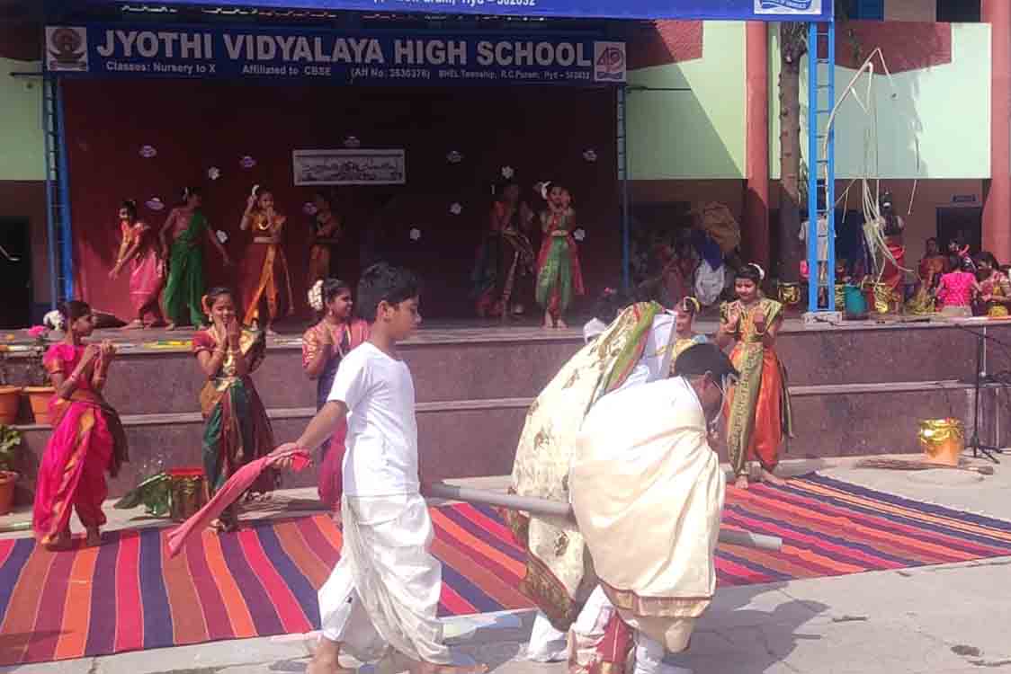 మకర సంక్రాంతి పర్వదినాన్ని పురస్కరించుకొని బి. హెచ్. ఈ ఎల్ టౌన్ షప్ లోని జ్యోతి విద్యాలయలో సంక్రాంతి సంబరాలు ఘనంగా నిర్వహించారు. ఈ సందర్బంగా కరస్పాండెంట్ అంబ్రోస్ బెక్, ప్రిన్సిపాల్ ఉమామహేశ్వరీ లు మాట్లాడుతు తెలుగు సంస్కృతి సాంప్రదాయాలకు ప్రతిబింబo సంక్రాంతి అని, వీటికి విద్యార్థులు ప్రదర్శించిన ప్రదర్శనలే నిదర్శనమన్నారు. పండుగ ఔనత్యాన్ని చక్కగా వివరిస్తూ రంగువల్లులు, బోగి మంటలు,, గోబ్బేమ్మలతో జానపదాలతో విద్యార్థులు చక్కటి ప్రదర్శనలతో అలరించారు.