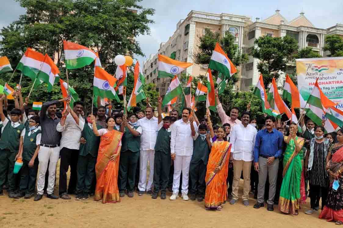 త్రివేణి విద్యార్థినీ విద్యార్థులు ఆజాదీక అమృత్ – హర్ ఘర్ క తరంగ్ కార్యక్రమంలో భాగంగా శనివారం రోజు చందానగర్ జిహెచ్ఎంసి ఆఫీస్ నుండి చందానగర్ పీజేఆర్ స్టేడియం వరకు త్రివేణి స్కూల్ విద్యార్థులు, శేరిలింగంపల్లి ఎమ్మెల్యే గాంధీ, కార్పొరేటర్లు జగదేశ్వర్ గౌడ్, మంజుల రెడ్డి, నార్నే శ్రీనివాస్, ఉప్పల పాటి శ్రీకాంత్, జి.హెచ్.ఎం.సి.సిబ్బంది కల్సి ర్యాలీ నిర్వహించారు