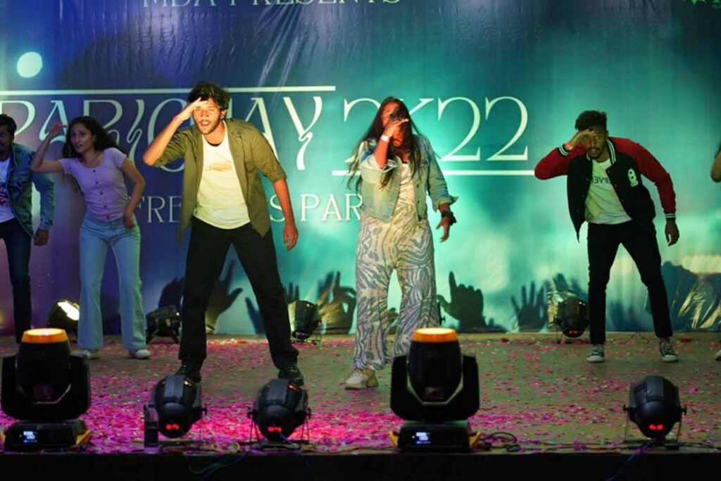 గీతం హెదరాబాద్ బిజినెస్ స్కూల్ , గీతం స్కూల్ ఆఫ్ సెన్స్ విద్యార్థులు విడివిడిగా ఫ్రెషర్స్ పార్టీలను మంగళవారం వినూత్నంగా నిర్వహించారు . ఎంతో ఉత్సుకతతో ఫ్రెషర్స్ పార్టీ కోసం ఆసక్తిగా ఎదురు చూసిన మేనేజ్మెంట్ , సెన్స్ విద్యార్థులు సంగీతం , ఆటలు , పాటలు , పసందైన విందులతో ఉల్లాసంగా , ఉత్సాహభరితంగా గడిపారు . కొత్త విద్యార్థులను స్నేహపూర్వక వాతావరణంలో స్వాగతించడం , వారి సృజనాత్మక ప్రేరణలను ప్రోత్సహించడం , వారిలో విశ్వాసాన్ని ఇనుమడింపజేయడం ఈ ఫ్రెసర్స్ డే ముఖ్య లక్ష్యం . డే మిరుమిట్లు గొలిపే వస్త్రధారణతో , సీతాకోక చిలుకల్లా అటూ ఇటూ కలియతిరుగుతున్న విద్యార్థులతో ప్రాంగణమంతా శోభాయమానంగా మారి , పండుగ శోభను సంతరించుకుంది .