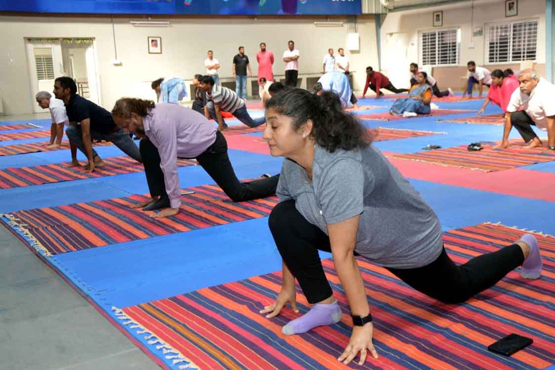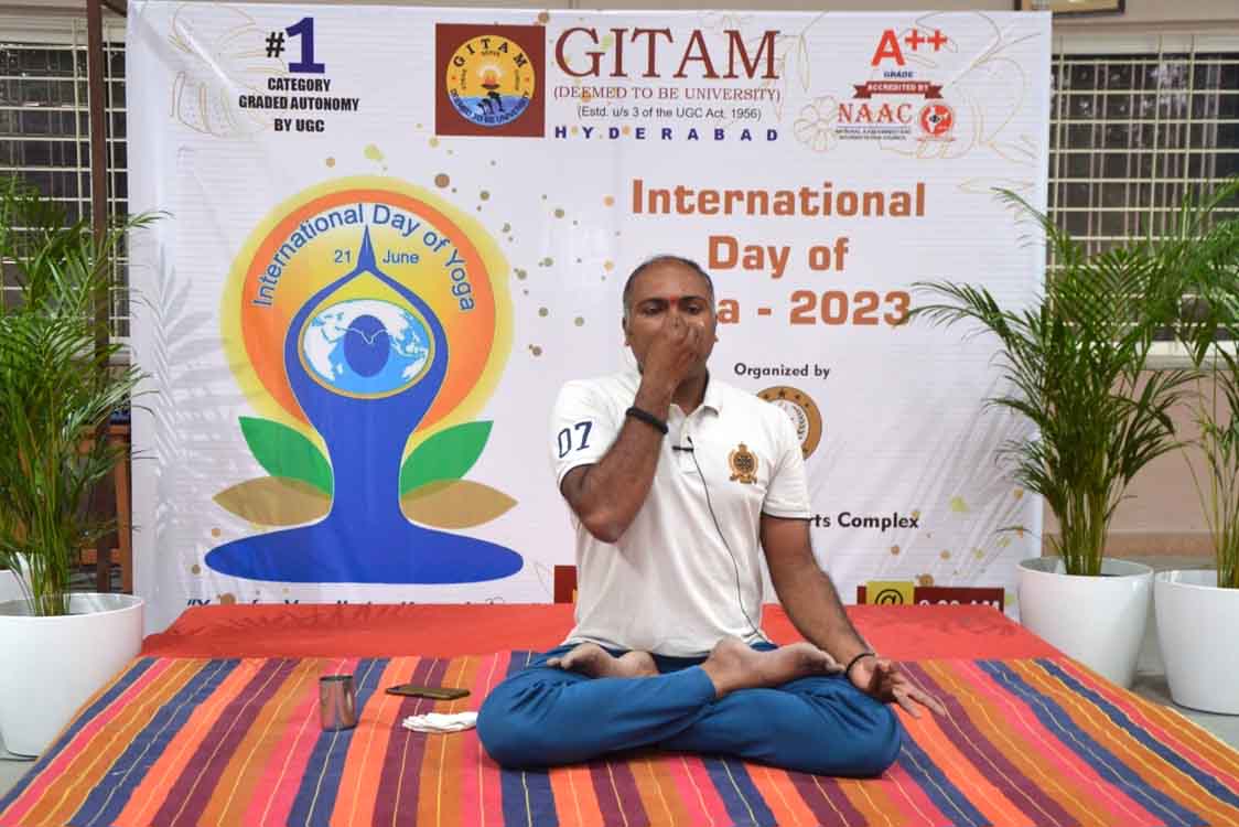 గీతం డీమ్డ్ విశ్వవిద్యాలయం, హైదరాబాద్లో బుధవారం అంతర్జాతీయ యోగా దినోత్సవాన్ని ఘనంగా నిర్వహించారు. ‘ససుధెస్ట్ కుటుంబానికి యోగా అనే ఇతివృత్తంతో నిర్వహించిన ఈ కార్యక్రమంలో పలువురు విద్యార్థులు, అధ్యాపకులు, సిబ్బంది ఉత్సాహంగా పాల్గొన్నారు. తొలుత, గీతం హెదరాబాద్ ప్రొ వెస్ట్ ఛాన్సలర్ ప్రొఫెసర్ డీ.ఎస్.రావు మరియు రెసిడెంట్ డెరెక్టర్ డీవీవీఎస్ఆర్ వర్మ ప్రసంగంతో ఈ వేడుకలు ప్రారంభమయ్యాయి. యోగా గురించి, రోజువారీ జీవితంలో యోగ సాధన చేయడం వలన కలిగే ప్రయోజనాలను వారు వివరించారు. ఆరోగ్యకరమైన శరీరం, మనస్సుల కోసం, అలాగే పనిలో ఒత్తిడిని తగ్గించడానికి నిత్యం యోగ సాధన ఎలా ఉపకరిస్తుందో వాళ్ళు విడమరిచి చెప్పారు. ఇతర ఔత్సాహిక సాధకులతో కలిసి వాళ్ళు యోగా సాధనలో ఉత్సాహంగా పాల్గొన్నారు.
