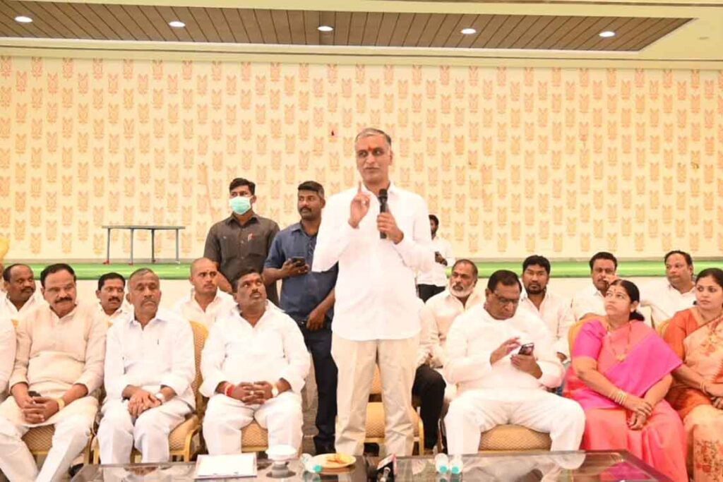 ఈనెల 21వ తేదీన నారాయణఖేడ్ లో సంగమేశ్వర బసవేశ్వర ఎత్తిపోతల పథకం శంకుస్థాపన సందర్భంగా నిర్వహించబోయే భారీ బహిరంగ సభకు పటాన్చెరు నియోజకవర్గం నుండి పదివేల మంది కార్యకర్తలు తరలి రావాలని రాష్ట్ర ఆర్థిక శాఖ మంత్రి తన్నీరు హరీష్ రావు కోరారు. ఈ కార్యక్రమానికి రాష్ట్ర ముఖ్యమంత్రి కేసీఆర్ ముఖ్య అతిథిగా హాజరు కాబోతున్నారని తెలిపారు. శనివారం పటాన్చెరు పట్టణంలోని జిఎంఆర్ ఫంక్షన్ హాల్ లో ఎమ్మెల్యే గూడెం మహిపాల్ రెడ్డి అధ్యక్షతన ముఖ్యమంత్రి కేసీఆర్ బహిరంగ సభ నియోజకవర్గ స్థాయి సన్నాహక సమావేశం నిర్వహించారు. ఈ సమావేశానికి మంత్రి హరీష్ రావు ముఖ్య అతిథిగా హాజరయ్యారు.