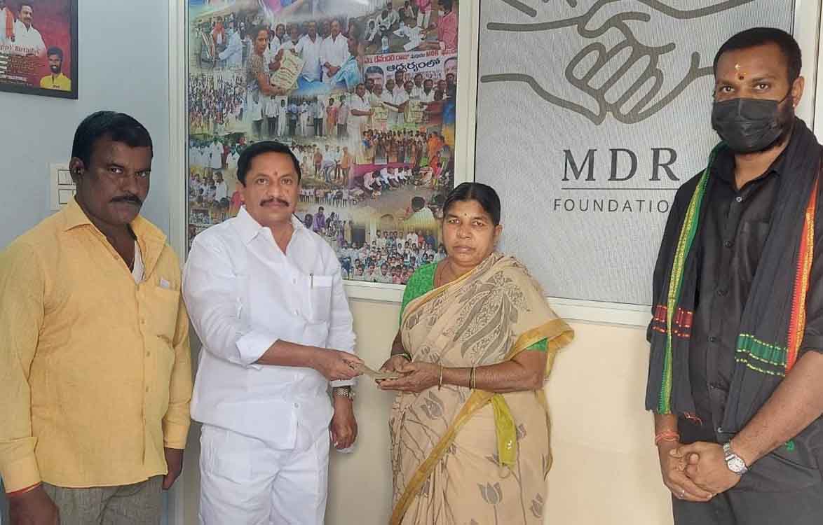 పెద్ద దిక్కు లేని ఓ మహిళ ఇంటి నిర్మాణానికి ఎండిఆర్ పౌండేషన్ సహకారం అందించింది. పటాన్ చెరు బండ్లగూడలో నివాసం ఉంటున్న వడ్డే ఎల్లమ్మ ఇల్లు శిథిలావస్థకు చేరుకుంది. గత వర్షాకాలంలో నీరు ఇంటిలోకి వెళ్లి పడుకోవడానికి కూడా ఇబ్బందిగా మారిన దుస్థితి ఏర్పడింది. ఆమె ఇటీవలే ఇంటి నిర్మాణం చేపట్టింది. దీంతో ఆమె దుస్థితిని ఎండిఆర్ పౌండేషన్, చైర్మన్, పటాన్చేరు మాజీ సర్పంచ్ మాదిరి దేవేందర్ రాజు ముదిరాజ్ గారి దృష్టికి స్థానికులు తీసుకువచ్చారు. దీంతో స్పందించిన ఎండిఆర్ పౌండేషన్ ఆమె ఇంటి నిర్మాణానికి 20,000 ఆర్థిక సహాయం అందించారు. ఆమె ఎండిఆర్ ఫౌండేషన్ చైర్మన్ మాదిరి దేవేందర్ రాజు గారికి కృతజ్ఞతలు తెలియజేశారు.