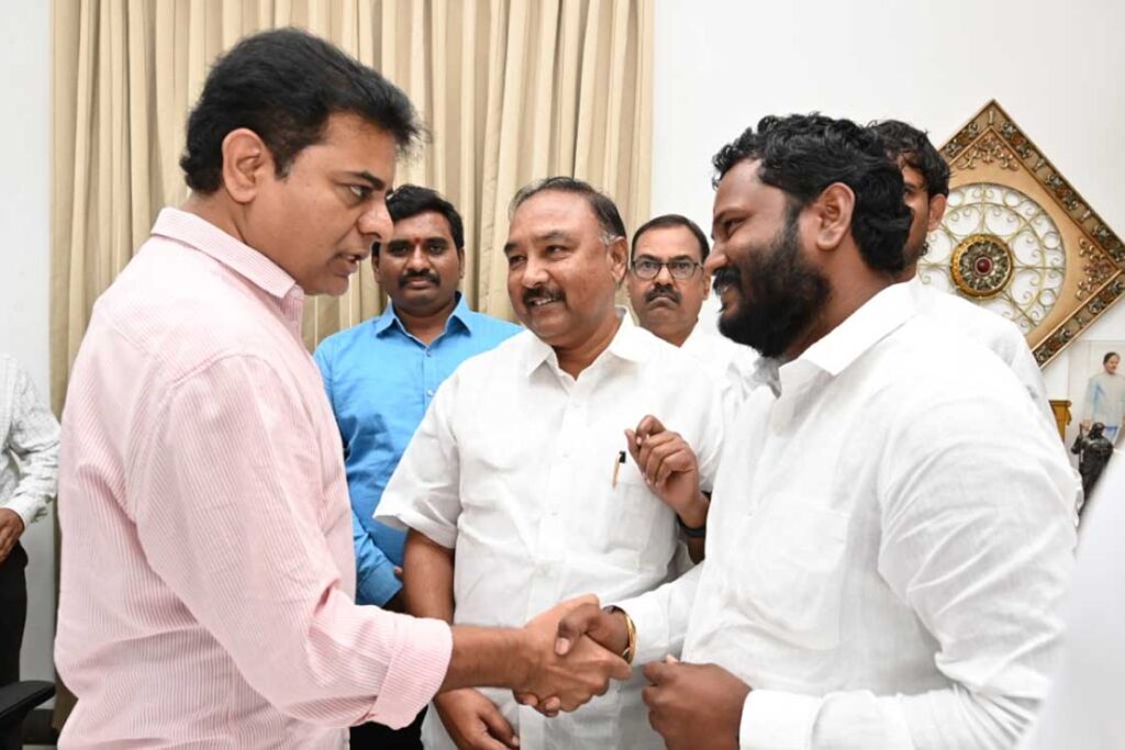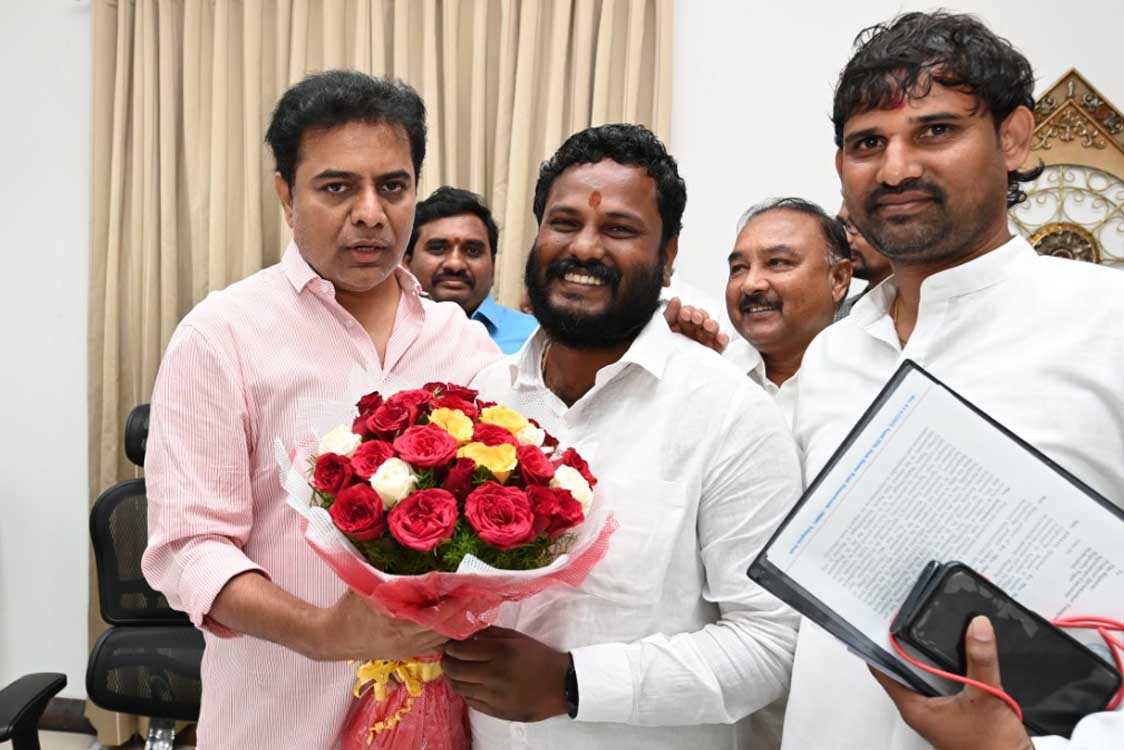 తెలంగాణ రైతాంగ సాయుధ పోరాటంలో కీలక భూమిక వహించిన చాకలి ఐలమ్మ 128 వ జయంతి ఉత్సవాలను ఘనంగా నిర్వహించినందుకు టీఆర్ఎస్ నేత నీలం మధు ముదిరాజ్ ను మంత్రి కేటీఆర్ అభినందించారు . సంగారెడ్డి జిల్లా చిట్కూల్ గ్రామంలో చాకలి ఐలమ్మ జయంతోత్సవాలను ఘనంగా నిర్వహించినందుకు మంత్రి కేటీఆర్ సన్మానించారు .చిట్కూల్ గ్రామంలో చాకలి ఐలమ్మ అతిపెద్ద కాంస్య విగ్రహం అవిష్కరణకు తాను రావాలేకపోయానని మంత్రి కేటీఆర్ ఈ సందర్భంగా తెలిపారు. హైదరాబాద్ ప్రగతి భవన్ లో నీలం మధు ముదిరాజ్ , ఎమ్మెల్సీ బండా ప్రకాష్ తో కలిసి మంత్రి కేటీఆర్ ను కలిశారు .నీలం మధు ముదిరాజ్ మంత్రి కేటీఆర్ ను మర్యాదపూర్వకంగా కలిసి దసరా ,దీపావళీ శుభాకాంక్షులు తెలిపారు.