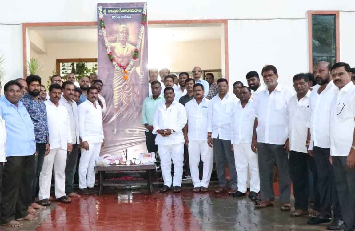 విప్లవ వీరుడు అల్లూరి సీతారామరాజు 125వ జయంతిని సోమవారం సాయంత్రం పటాన్చెరు పట్టణంలోని ఎమ్మెల్యే క్యాంపు కార్యాలయంలో ఘనంగా నిర్వహించారు. ఈ సందర్భంగా అల్లూరి సీతారామరాజు చిత్రపటానికి ఎమ్మెల్యే జిఎంఆర్ పూలమాలవేసి ఘన నివాళులు అర్పించారు. స్వాతంత్ర సంగ్రామంలో బ్రిటిష్ వారిపై అలుపెరుగని పోరాటం చేసిన మహోన్నత నాయకుడు మన్యం వీరుడు అల్లూరి సీతారామరాజు అని కొనియాడారు. ఆయన జీవితం తెలుగుజాతి తెగువకు నిలువెత్తు నిదర్శనమని అన్నారు.ఈ కార్యక్రమంలో అమీన్పూర్ జడ్పిటిసి సుధాకర్ రెడ్డి, పటాన్చెరు కార్పొరేటర్ మెట్టు కుమార్ యాదవ్, మాజీ ఎంపీపీ యాదగిరి యాదవ్, టిఆర్ఎస్ పార్టీ సీనియర్ నాయకులు గూడెం మధుసూదన్ రెడ్డి, దశరథ్ రెడ్డి వెంకట్ రెడ్డి, మార్కెట్ కమిటీ డైరెక్టర్ అశోక్, పార్టీ పట్టణ అధ్యక్షులు అఫ్జల్, సీనియర్ నాయకులు, కార్యకర్తలు పెద్ద సంఖ్యలో పాల్గొన్నారు.