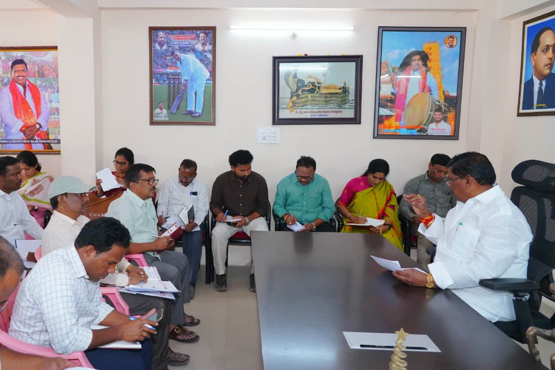 ప్రజలకు అత్యంత ఆవశ్యకమైన తాగునీరు సరఫరా, నిరంతర విద్యుత్ పంపిణీ, పారిశుధ్యం అంశంలో అలసత్వం వహించవద్దని.. నిరంతరం క్షేత్రస్థాయిలో పర్యటిస్తూ పర్యవేక్షించాలని ఆయా శాఖల ఉన్నత అధికారులకు ఎమ్మెల్యే జిఎంఆర్ సూచించారు.సోమవారం ఉదయం క్యాంపు కార్యాలయంలో అమీన్పూర్, పటాన్చెరు బల్దియా డిప్యూటీ కమిషనర్లు, ఆయా మండలాల తహసిల్దార్లు, మున్సిపల్ కమిషనర్లు, మున్సిపల్ చైర్మన్లు, విద్యుత్, నీటిపారుదల, పిసిబి, జాతీయ రహదారులు, పంచాయతీరాజ్, గ్రామీణ నీటిపారుదల, జలమండలి, పరిశ్రమలు, టౌన్ ప్లానింగ్ శాఖల అధికారులతో వివిధ అంశాలపై ఎమ్మెల్యే జిఎంఆర్ సమీక్ష సమావేశం నిర్వహించారు. ఈ సందర్భంగా ఆయన మాట్లాడుతూ ప్రస్తుత వేసవికాలంలో ప్రజలకు ఎటువంటి ఇబ్బందులు తలెత్తకుండా నిరంతరంగా విద్యుత్ సరఫరా చేయడంతో పాటు, నిర్దేశించిన సమయంలో తాగునీరు పంపిణీ చేయాలని సూచించారు. లో వోల్టేజి సమస్యలు తలెత్తకుండా విద్యుత్ డిమాండ్ కు అనుగుణంగా నూతన ట్రాన్స్ఫార్మర్లు ఏర్పాటు చేయాలని ఆదేశించారు.ఐదు మున్సిపాలిటీలకు మంజూరైన 75 కోట్ల రూపాయల అభివృద్ధి పనులకు అతి త్వరలో శంకుస్థాపన చేయబోతున్నట్లు తెలిపారు.