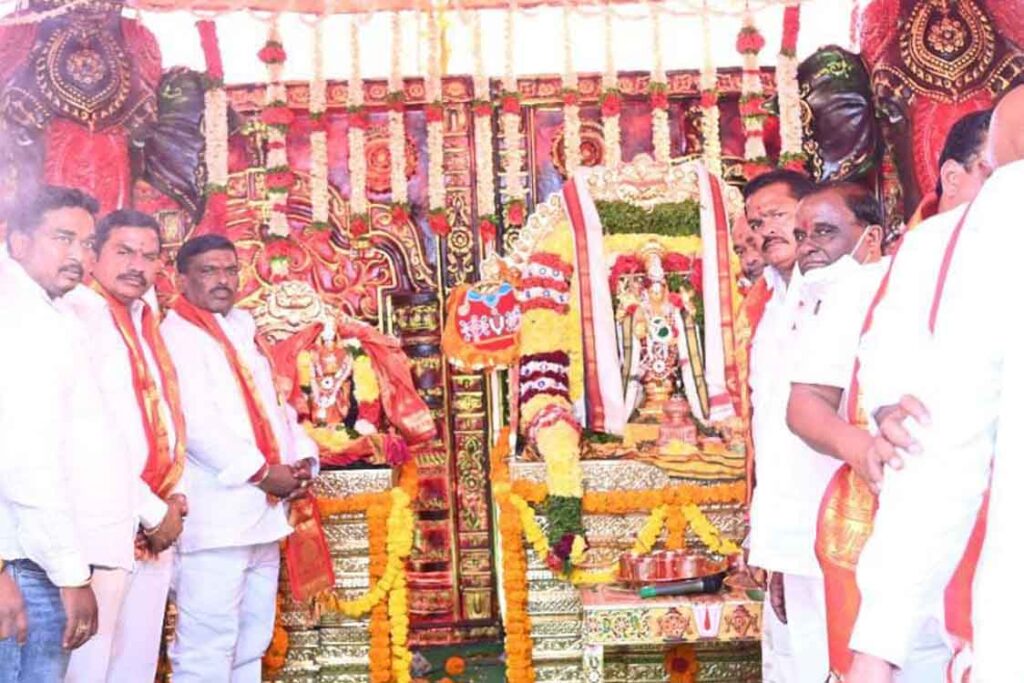 పటాన్చెరు పట్టణంలోని జెపి కాలనీ లో శ్రీ వెంకటేశ్వర మంత్ర పీఠం ఆధ్వర్యంలో నిర్వహించిన వెంకటేశ్వర స్వామి కళ్యాణం లో పాల్గొన్నారు. ఈ కార్యక్రమాల్లో పటాన్చెరు వ్యవసాయ మార్కెట్ కమిటీ చైర్మన్ హారిక విజయ్ కుమార్, పటాన్చెరు కార్పొరేటర్ మెట్టు కుమార్ యాదవ్, టిఆర్ఎస్ పార్టీ సీనియర్ నాయకులు దశరథ రెడ్డి, వెంకట్ రెడ్డి, మాణిక్ రెడ్డి, విజయ్ కుమార్, అఫ్జల్, స్థానిక నాయకులు, కార్యకర్తలు, తదితరులు పాల్గొన్నారు.