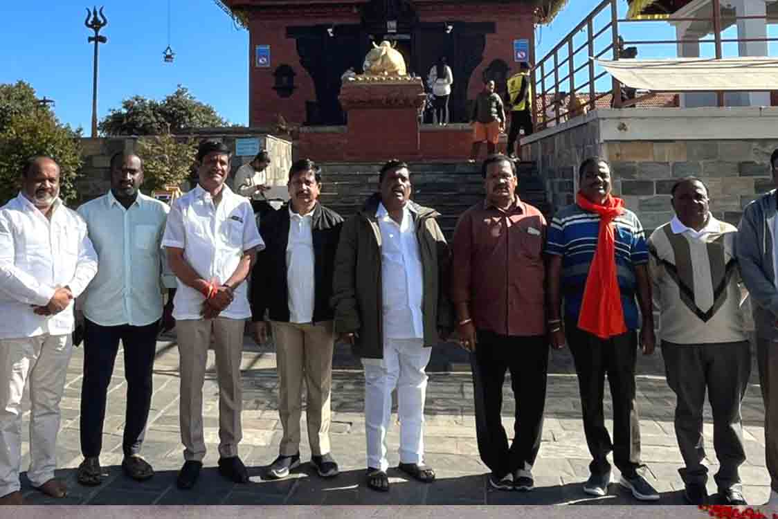 పటాన్చెరు శాసనసభ్యులు శ్రీ గూడెం మహిపాల్ రెడ్డి గారు నేపాల్ దేశంలో పర్యటిస్తున్నారు.మంగళవారం నేపాల్ రాజధాని ఖాట్మండు సమీపంలోని చంద్రగిరి పర్వతాల పైన గల భలేశ్వర్ మహాదేవ్ దేవాలయాన్ని ఆయన దర్శించుకున్నారు. ఈ సందర్భంగా ఆలయంలో ప్రత్యేక పూజలు నిర్వహించారు. అనంతరం స్థానిక ప్రజాప్రతినిధులు ఆలయ కమిటీ సభ్యులు ఎమ్మెల్యే జిఎంఆర్ ను ఘనంగా సన్మానించారు. ఈ కార్యక్రమంలో అమీన్ పూర్ జెడ్పీటీసీ సుధాకర్ రెడ్డి, మాజీ ఎంపీపీ లు యాదగిరి యాదవ్, శ్రీశైలం యాదవ్, సీనియర్ నాయకులు వెంకట్ రెడ్డి, దశరథ్ రెడ్డి, పాండు, రాజు, తదితరులు పాల్గొన్నారు.