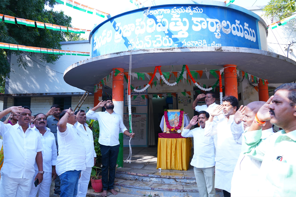 ప్రజా సంక్షేమమే లక్ష్యంగా ముఖ్యమంత్రి రేవంత్ రెడ్డి ప్రజాపాలన కార్యక్రమం నిర్వహిస్తున్నారని పటాన్చెరు శాసన సభ్యులు గూడెం మహిపాల్ రెడ్డి తెలిపారు. ప్రజాపాలన కార్యక్రమం పురస్కరించుకొని పటాన్చెరు పట్టణంలోని ఎంపీడీవో కార్యాలయం ఆవరణలో ఏర్పాటు చేసిన జాతీయ జెండా ఆవిష్కరణ కార్యక్రమం ఆయన ముఖ్య అతిథిగా హాజరయ్యారు. ఈ సందర్భంగా ఆయన మాట్లాడుతూ.. ఆరు గ్యారెంటీ ల పేరుతో అధికారంలోకి వచ్చిన కాంగ్రెస్ పార్టీ ప్రభుత్వం నేడు వాటి అమలుకు ప్రణాళిక అబద్ధం గా కృషి చేస్తుందని తెలిపారు. అర్హులైన ప్రతి ఒక్కరికి సంక్షేమ పథకాలు అందిస్తూ వారి జీవితాల్లో ఆర్థిక అభ్యున్నతి చేస్తున్నామని పేర్కొన్నారు. వచ్చే నెలలో నూతన రేషన్ కార్డులు అందించబోతున్నామని తెలిపారు. చెరువులు కుంటలు ప్రభుత్వ భూముల సంరక్షణ కోసమే ప్రభుత్వం హైడ్రా ఏర్పాటు చేసిందని తెలిపారు. ఈ కార్యక్రమంలో మండల ప్రత్యేక అధికారి దేవజ, ఎమ్మార్వో రంగారావు, మాజీ ఎంపీపీ యాదగిరి యాదవ్, మార్కెట్ కమిటీ మాజీ చైర్మన్ విజయ్ కుమార్, సీనియర్ నాయకులు గూడెం మధుసూదన్ రెడ్డి, నరసింహారెడ్డి, సీనియర్ నాయకులు వివిధ శాఖల అధికారులు పాల్గొన్నారు.