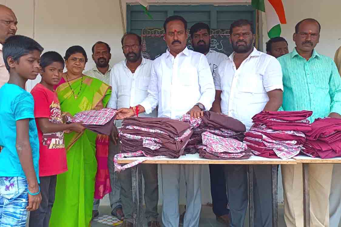 సంగారెడ్డి జిల్లా జిన్నారం మండల కేంద్రంలోని జిల్లా పరిషత్ ఉన్నత పాఠశాలలో విద్యార్థులకు స్కూల్ యూనిఫాం పంపిణీ కార్యక్రమానికి ముఖ్య అతిథిగా విచ్చేసిన ఎంపిటిసి వెంకటేశం గౌడ్ పాల్గొని విద్యార్థులకు ప్రభుత్వం నుండి అందించే స్కూల్ యూనిఫాంలను అందించారు . ఈ సందర్భంగా పాఠశాల ప్రధానోపాధ్యాయుడు నరేష్ కుమార్ మాట్లాడుతూ 75 స్వతంత్ర భారత వజ్రోత్సవాల్లో భాగంగా పాఠశాలలో విద్యార్థులకు ఆటల పోటీలు మొక్కలు నాటే కార్యక్రమాన్ని నిర్వహిస్తున్నామని దీనిలో భాగంగా ప్రభుత్వం నుండి వచ్చిన స్కూల్ యూనిఫామ్ లను అందజేశామని అన్నారు. పాఠశాల అభివృద్ధికి సహకరిస్తున్న గ్రామ సర్పంచ్,ఎంపీటీసీలు వార్డు సభ్యులకు ధన్యవాదాలు తెలియజేశారు. ఈ కార్యక్రమంలో మాజీ ఎంపిటిసి శ్రీనివాస్ రెడ్డి, కో ఆప్షన్ సభ్యులు శ్రీనివాస్ గౌడ్ ,వార్డు సభ్యులు శ్రీనివాస్ యాదవ్ ,గోకర్ శ్రీధర్ గౌడ్ ,ఏర్పుల లింగం,ఎస్ఎంసి చైర్మన్ ఏర్పుల భాస్కర్,నిఖిల్ గౌడ్, యూత్ అధ్యక్షుడు ప్రేమ్,శేఖర్,రాము,సంజీవ తదితరులు పాల్గొన్నారు.