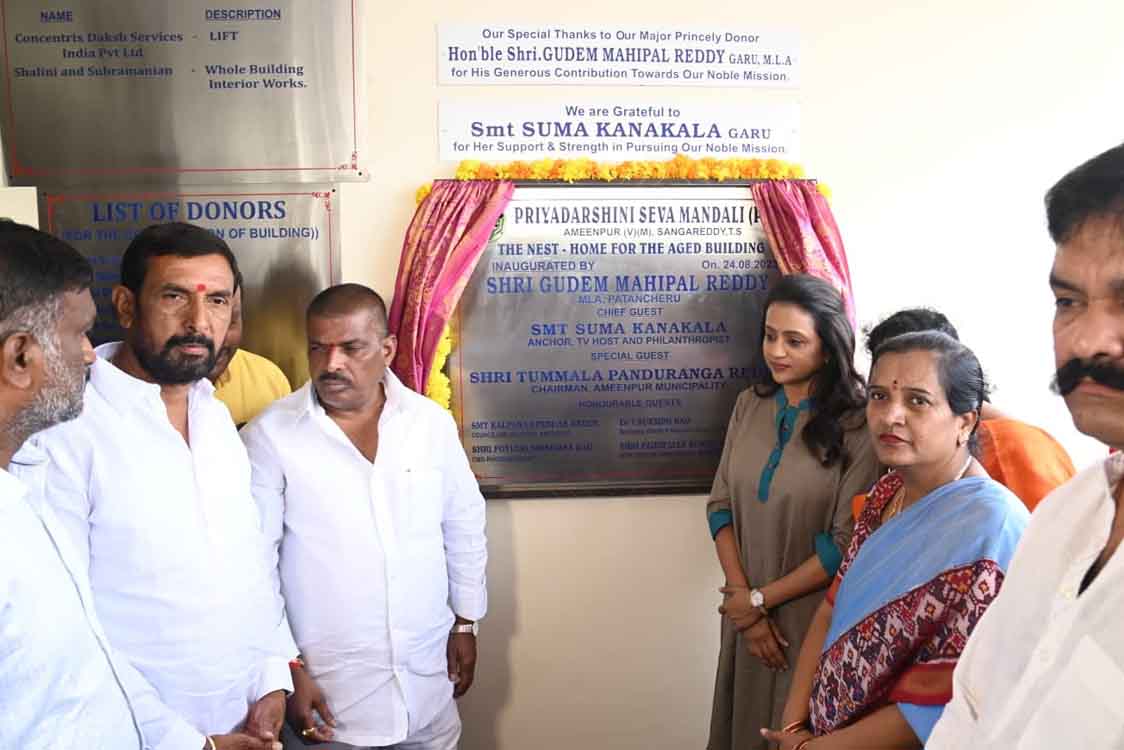వయోవృద్ధుల సంక్షేమం కోసం వృద్ధాశ్రమాలు ఏర్పాటు చేయడం అభినందనీయమని పటాన్చెరు శాసనసభ్యులు గూడెం మహిపాల్ రెడ్డి అన్నారు. అమీన్పూర్ మున్సిపల్ పరిధిలోని వాణి నగర్ లో నూతనంగా నిర్మించిన ది నెస్ట్ హోం ఫర్ ది ఏజ్ వృద్ధాశ్రమం భవనాన్ని ఆయన ప్రారంభించారు. ఈ సందర్భంగా ఏర్పాటు చేసిన సమావేశంలో ఆయన మాట్లాడుతూ.. జీవితంలోని చివరి అంకంలో కుటుంబ సభ్యుల నిరాదరణకు గురై వృద్ధాశ్రమంలో చేరే వృద్ధుల ఆలనా పాలనా చూసేందుకు ఆశ్రమాలు ఏర్పాటు చేయడం సంతోషకరమన్నారు. పటాన్చెరు నియోజకవర్గ పరిధిలోను సొంత నిధులతో వృద్ధాశ్రమం ఏర్పాటు చేసేందుకు కృషి చేస్తున్నట్లు ఆయన తెలిపారు. ఈ సందర్భంగా ఆశ్రమం నిర్వాహనకు ఐదు లక్షల రూపాయల విరాళాన్ని అందించారు. భవిష్యత్తులోనూ సంపూర్ణ సహకారం అందిస్తామని తెలిపారు. ఈ సమావేశంలో అమీన్పూర్ మున్సిపల్ చైర్మన్ తుమ్మల పాండురంగారెడ్డి, కౌన్సిలర్ కల్పన ఉపేందర్ రెడ్డి, ప్రముఖ సినీ వ్యాఖ్యాత సుమ కనకాల, నిర్వాహకులు పాల్గొన్నారు.