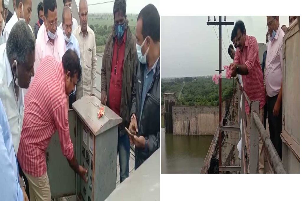సంగారెడ్డి జిల్లా పుల్కల్ మండలం లోని సింగూరు బాగారెడ్డి ప్రాజెక్టు నిండు కుండల మారింది. ఎగువన కురుస్తున్న వర్షాలకు ప్రాజెక్టు లోకి భారీగా వరద నీరు వచ్చి చేరుతుంది. దీంతో ప్రాజెక్టు 11వ నెంబర్ గేటు ద్వారా 8వేల క్యూసెక్కుల నీటిని ఎమ్మెల్యే క్రాంతికిరన్ గారు ఇరిగేషన్ అధికారులతో కలిసి విడుదల చేశారు. ముందుగా గంగా పూజ చేసి తదనంతరం ఎమ్మెల్యే క్రాంతికిరన్ గారు నీటిని విడుదల చేశారు.