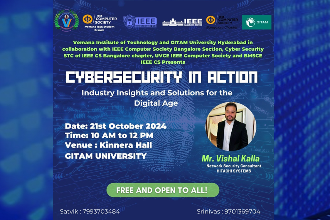 గీతం స్కూల్ ఆఫ్ టెక్నాలజీలోని సీఎస్ఈ విభాగం ఆధ్వర్యంలో ఈనెల 21 నుంచి 24 వరకు ‘సైబర్ సెక్యూ రిటీ వారోత్సవం-2024’ను బెంగళూరులోని వేమన ఇన్-స్టిట్యూట్ ఆఫ్ టెక్నాలజీ సహకారంతో నిర్వహించనున్నారు. బెంగళూరులోని సైబర్ సెక్యూరిటీ ఎస్టీసీ, ఐ ట్రిపుల్ ఈ కంప్యూటర్ సొసైటీల సౌజన్యంతో, వేగంగా అభివృద్ధి చెందుతున్న సైబర్ సెక్యూరిటీ రంగంలో విద్యార్థుల జ్జానం, నైపుణ్యాలను పెంపొందించడం లక్ష్యంగా నిర్దేశించు కున్నట్టు కార్యక్రమ సమన్వయకర్త డాక్టర్ నిరంజన్ అప్పస్వామి బుధవారం విడుదల చేసిన ప్రకటనలో వెల్లడించారు.అక్టోబర్ 21న ప్రారంభోత్స వేడుకతో ఆరంభమవుతుందని, ఆ తరువాత హైదరాబాద్-లోని హిటాచీ ఇండియాకు చెందిన విశాల్ కల్లా ‘సైబర్ భద్రతా చర్యలు: డిజిటల్ యుగం కోసం పరిశ్రమ అంతర్దృష్టులు, పరిష్కారాలు’ అనే అంశంపై స్ఫూర్తిదాయక కీలకోపన్యాసం చేస్తారని తెలిపారు. అదే సమయంలో, గురురాజ్ దేశ్-పాండే వేమన ఇన్-స్టిట్యూట్లో ‘చిన్న బగ్-ల నుంచి ప్రధాన ఉల్లంఘనల వరకు: సైబర్ దాడి కథనాలు’ అనే అంశంపై ప్రసంగించి, వాస్తవ ప్రపంచ సైబర్ సెక్యూరిటీ సవాళ్లపై లోతైన అవగాహనను కల్పిస్తారన్నారు. అదే రోజు మధ్యాహ్నం ‘బిగ్ సైబర్ ఇన్ఫర్మేటిక్స్’పై ఫోరెన్సిక్ కార్యశాలను ప్రొఫెసర్ ఎస్.దిలీప్ నిర్వహిస్తారని డాక్టర్ నిరంజన్ తెలియజేశారు.అక్టోబర్ 22న, ‘సెక్యూర్ ఐడియాథాన్’ పేరిట పోటీలు నిర్వహించి, విజేతలకు నగదు పురస్కారాలను అందజేస్తారని, దీనికి ఎటువంటి రుసుము లేదని, అయితే పేర్ల నమోదు తప్పనిసరని అన్నారు. ఇక ఈ వారోత్సవాలకే తలమానికం లాంటి ‘సెక్యూర్ హాక్’ పేరిట 24 గంటల హ్యాకథాన్ అక్టోబర్ 23న ఉదయం 10 గంటలకు ప్రారంభమై, మరునాడు రాత్రి 12 గంటలకు ముగుస్తుందని తెలిపారు. విజేతలకు ఆకర్షణీయమైన నగదు పురస్కారాలుంటాయని, ఐ ట్రిపుల్ ఈ జట్లకు నామమాత్రపు (రూ.70) రుసుము, ఇతరులు రూ.100 చెల్లించి తమ జట్ల పేర్లు నమోదు చేసుకోవాలని సూచించారు.సైబర్ భద్రత యొక్క సంక్లిష్టతలపై అవగాహన ఏర్పరచడానికి, తరువాతి తరం సైబర్ సెక్యూరిటీ నిపుణులను ప్రేరేపించడానికి అవసరమైన జ్జానం, నైపుణ్యాలను విద్యార్థులకు సమకూర్చడం లక్ష్యంగా దీనిని నిర్వహిస్తున్నట్టు డాక్టర్ నిరంజన్ వివరించారు. ఆసక్తి గలవారు తమ పేర్ల నమోదు, ఇతర వివరాల కోసం https://linktr.ee/homepage.cyberweek లింక్-ను సందర్శించాలని, లేదా 81230 33210ను సంప్రదించాలని సూచించారు.