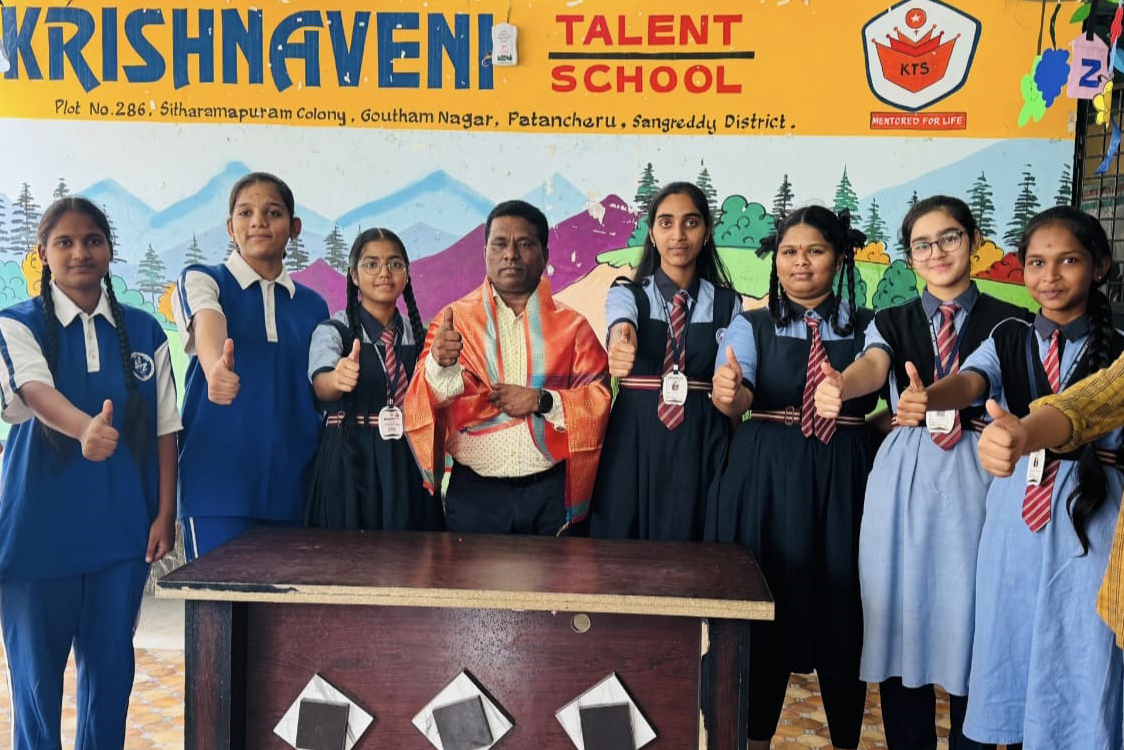 పది ఫలితాలలో పటాన్ చెరు కృష్ణవేణి ప్రభంజనమే సృష్టించింది. గత బుధవారం వెలువడిన పదవ తరగతి ఫలితాల్లో పటాన్ చెరు పట్టణంలోని సీతారామపురం లో గల కృష్ణవేణి టాలెంట్ స్కూల్ విద్యార్థులు తమ అత్యుత్తమ సత్త చాటడంతోపాటు, 578 మార్కులతో కే, నిశ్చితారెడ్డి పట్టణ టాపర్ గా నిలువగా,9 మంది విద్యార్థులు 550 పైగా మార్కులు,47 మంది విద్యార్థులు 500 పైగా మార్కులు సాధించి ఉత్తమ ప్రతిభ కనబరిచారు. శుక్రవారం పట్టణంలోని సీతారామపురంలోని కృష్ణవేణి పాఠశాలలో పాఠశాల ప్రిన్సిపాల్, డైరెక్టర్ నాగరాజు అచ్చే ఆధ్వర్యంలో జరిగిన సన్మాన కార్యక్రమంలో కృష్ణవేణి, మాస్టర్ మైండ్స్ విద్యాసంస్థల చైర్మన్ రాజు సంగాని టాపర్ గా నిలిచిన నిశ్చితారెడ్డి తో పాటు ఉత్తమ ప్రతిభ కనబరిచిన విద్యార్థులు వారి తల్లిదండ్రులను ప్రత్యేకంగా అభినందించడంతోపాటు వారిని ఘనంగా సత్కరించారు. ఈ సందర్భంగా ఆయన మాట్లాడుతూ ప్రిన్సిపాల్ నాగరాజు, నిష్టాతులైన ఉపాధ్యాయుల బోధించడంతోనే ఈరోజు కృష్ణవేణి ప్రభంజనం సృష్టించడంతోపాటు టాపర్ గా నిలిచిందన్నారు. ఈ విజయం విద్యార్థులతో పాటు ఉపాధ్యాయులకు దక్కుతుందన్నారు.మేము కష్టపడడం మానేస్తామని అనుకోవద్దని, మీరు ఇంటర్ లో కూడా బాగా కష్టపడి మంచి ర్యాంకు తో విజయం సాధించి ఉన్నత చదువులు చదివి ఉన్నత స్థాయిలో ఉద్యోగాలు సంపాదించినప్పుడే మీరు తల్లిదండ్రులకు, ఈ పాఠశాల ఉపాధ్యాయులకు ఇచ్చే గొప్ప గౌరవంగా భావిస్తామన్నారు. ప్రిన్సిపల్, డైరెక్టర్ అచ్చే నాగరాజు మాట్లాడుతూ ప్రతిభవంతులైన ఉపాధ్యాయుల బోధన, విద్యార్థులు కష్టంతో కాకుండా ఇష్టంతో చదవడంతో నే ఉత్తమ ఫలితాలు సాధించి పటాన్ చెరు పట్టణంలోనే టాపర్ గా నిలిచామన్నారు. పట్టణ టాపర్ గా నిలిచిన నిశ్చితారెడ్డి తోపాటు ఉత్తమ ఫలితాలు సాధించిన విద్యార్థులకు శుభాభివందనాలు తెలియజేశారు.