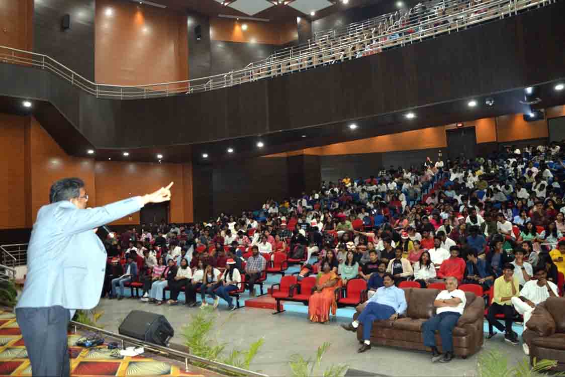 గీతం డీమ్డ్ విశ్వవిద్యాలయం, హైదరాబాద్ లోని శివాజీ ఆడిటోరియంలో గురువారం ముందస్తు క్రిస్మస్ వేడుకలను ఘనంగా నిర్వహించారు. ప్రకాశంతమైన, రంగు రంగుల గంటలు, నక్షత్రాలతో అలకరించిన ఆడిటోరియం పండుగ శోభను సంతరించుకుంది.స్వాగత వచనాలతో నాంది పలికిని క్రిస్మస్ సంబరాలు, శ్రావ్యమెన పాటలో ఆహూతులందరిలో ఉల్లాసాన్ని నింపాయి. నిండైన పండుగ వాతావరణంలో గీతం విద్యార్థులు ఆలపించిన మనోహరమైన పాటలు, ఆకర్షణీయమైన నృత్య ప్రదర్శనలతో వారిలో నిబిడీకృతంగా ఉన్న ప్రతిభను ప్రదర్శించారు. తమకున్నది ఇతరులతో పంచుకోవడం, మంచితనాన్ని వ్యాపింప చేయడం వంటి విలువలను నొక్కిచెబుతూ విద్యార్థులు నేటివిటీ సన్నివేశాన్ని నెపుణ్యంగా ప్రదర్శించారు. మానవాళి కోసం ఏసుక్రీస్తు జననం, త్యాగాన్ని చిత్రీకరిస్తూ, ఒక ఆంగ్ల నాటకాన్ని ప్రదర్శించి, క్రిస్మస్ ప్రాముఖ్యతను చాటిచెప్పారు. క్రిస్మస్ స్ఫూర్తిని తెలిపే కథనం, చిత్రీకరణ ప్రేక్షకులను ఆకట్టుకున్నాయి.