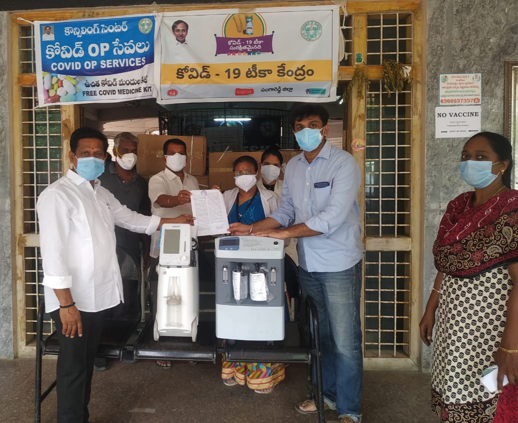 ప్రభుత్వ ఆసుపత్రిలోని కరోన సోకిన రోగులకు అవసరమయ్యే ఆక్సిజన్ వాయువు తయారు చేసి అందించే ఆక్సిజన్ కాన్సన్ట్రేటర్లను (పది లక్షల విలువ) గాంధీ మెడికల్ కాలేజీ 2000 బ్యాచ్ కు చెందిన మిత్ర బృందం తరపున డాక్టర్ మల్లెల శ్రీనివాస్ అందజేశారు. ఈ కార్యక్రమంలో రామచంద్రాపురం మాజీ ఎంపిపి నాలకంటి యాదగిరియాదవ్, కంకర శ్రీను, వంగరి అశోక్, ఆసుపత్రి వైద్య బృందం పాల్గొన్నారు.
