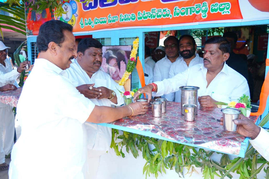 మానవసేవయే మాధవసేవ అని, వేసవికాలంలో ప్రయాణికుల దాహార్తిని తీర్చేందుకు శ్రీ భగవాన్ సత్యసాయి సేవా సమితి ఆధ్వర్యంలో ప్రతి సంవత్సరం పటాన్చెరు బస్టాండ్ లో చలివేంద్రాన్ని ఏర్పాటు చేయడం అభినందనీయమని స్థానిక శాసనసభ్యులు గూడెం మహిపాల్ రెడ్డి ప్రశంసించారు. ఆదివారం ఉదయం స్థానిక నాయకులతో కలిసి చలివేంద్రాన్ని ప్రారంభించారు. ఈ సందర్భంగా ఎమ్మెల్యే మాట్లాడుతూ సత్య సాయి బాబా సేవా సమితి ఆధ్వర్యంలో స్వచ్ఛంద సేవా కార్యక్రమాలతో పాటు భక్తి భావాన్ని పెంపొందించేలా కార్యక్రమాలు రూపొందించడం పట్ల ఆయన సంతోషం వ్యక్తం చేశారు. అనంతరం మార్కెట్ రోడ్డులో మురళి కిరాణా యాజమాన్యం ఆధ్వర్యంలో ఏర్పాటు చేసిన చలివేంద్రాన్ని సైతం ప్రారంభించారు. ఈ కార్యక్రమంలో మాజీ కార్పొరేటర్ మెట్టు కుమార్ యాదవ్, మార్కెట్ కమిటీ మాజీ చైర్మన్ విజయ్ కుమార్, సీనియర్ నాయకులు చంద్రశేఖర్ రెడ్డి, రామిరెడ్డి, రాజు, రామ్మోహన్ మల్లేష్, అజ్మత్, సేవా సమితి సభ్యులు పాల్గొన్నారు.