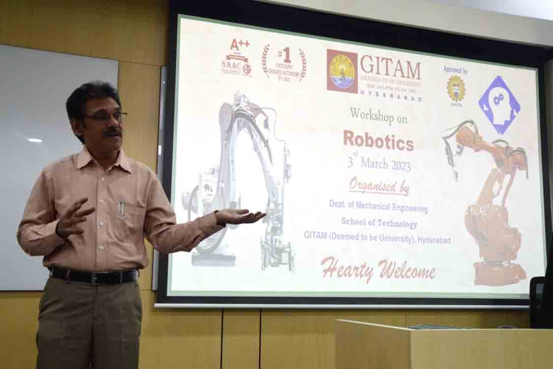 నాల్గవ తరం రోబోలు మానవ మానసిక శక్తితో సమానంగా రూపొందవచ్చని, అవి మేధోపరంగా బలీయులుగా మారే అవకాశం కూడా లేకపోలేదని గీతం స్కూల్ ఆఫ్ టెక్నాలజీ (ఎస్వోటీ) అసోసియేట్ డెరైక్టర్ ప్రొఫెసర్ ఎన్.సీతారామయ్య అభిప్రాయపడ్డారు. హైదరాబాద్లోని గీతమ్లో శుక్రవారం నిర్వహించిన ‘రోబోటిక్స్ వర్క్షాప్’, రోబోటిక్స్ అటానమస్ వెహికల్ క్లబ్ (ఆర్పీ)లను ఆయన లాంఛనంగా ప్రారంభించారు. మెకానికల్ ఇంజనీరింగ్, అడ్మిషన్ల విభాగాలు సంయుక్తంగా నిర్వహించిన ఈ కార్యక్రమంలో తెలంగాణ నలుమూల ఉన్న 15 పాలిటెక్నిక్ కళాశాలలకు చెందిన దాదాపు 180 మంది విద్యార్థులు పాల్గొన్నారు.భవిష్యత్తు విద్య నైపుణ్యాల ఆధారితంగా ఉంటుందని, అంతర్ విభాగ అవగాహనకు ప్రాముఖ్యత పెరుగుతుందని, పలు అంశాలపై నిపుణత సాధించి వారే నిలబడగలిగేలా ఉంటుందని ప్రొఫెసర్ సీతారామయ్య చెప్పారు. తయారీ రంగం, ప్యాకేజింగ్, ఆయుధాలు, భద్రత, వినియోగదారు-పారిశ్రామిక వస్తువుల భారీ ఉత్పత్తి మొదలైన వాటిలో రోబోలను విస్తృతంగా వినియోగిస్తున్నారని ఆయన వివరించారు. భవిష్యత్తు అవసరాలకు అనుగుణంగా విద్యార్థులు రాణించాలని ప్రొఫెసర్ సీతారామయ్య సూచించారు.మెకానికల్ ఇంజనీరింగ్ విభాగాధిపతి డాక్టర్ పి. శ్రీనివాస్ ఆ విభాగ ప్రాముఖ్యతను విద్యార్థులకు తెలియజెప్పడంతో పాటు, అక్కడి మానవ-సాంకేతిక వనరులను విద్యార్థులు గరిష్ఠంగా సద్వినియోగం చేసుకోవాలని హితబోధ చేశారు.
