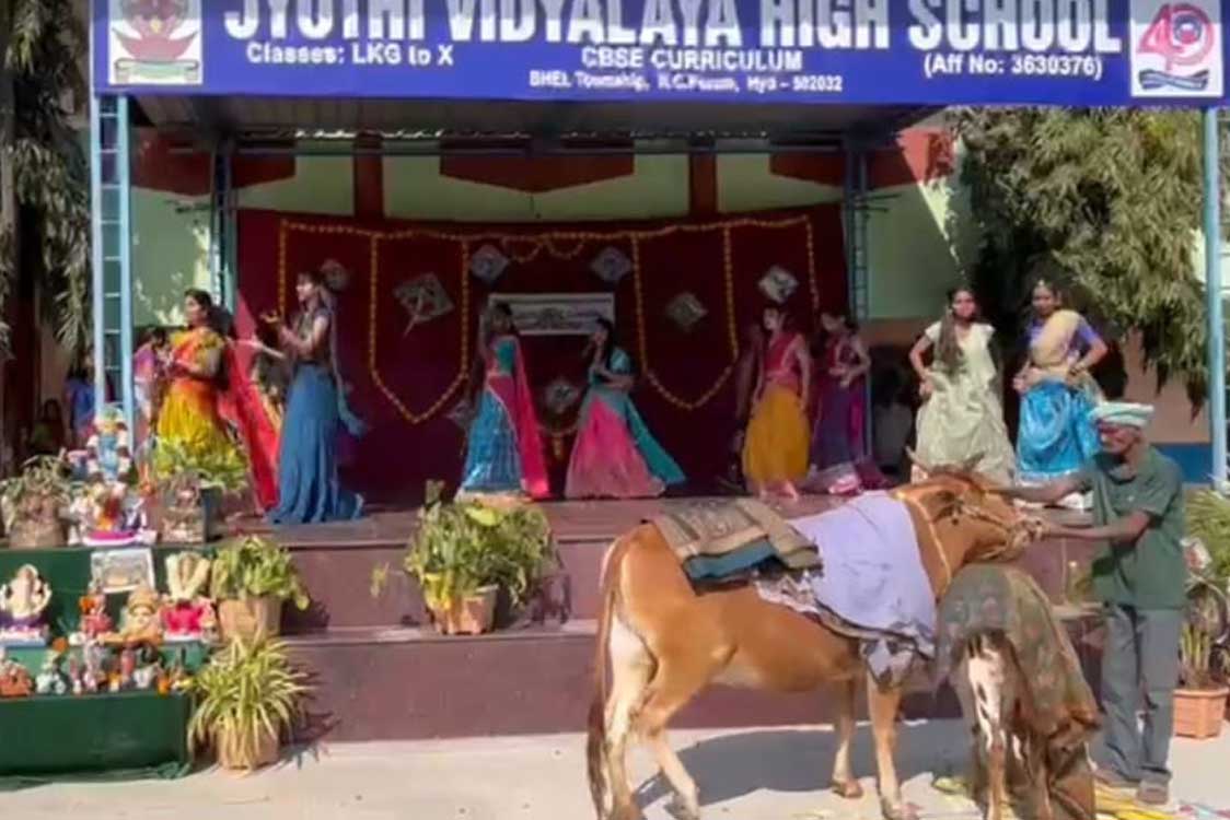 :తెలుగువారి సంస్కృతి సాంప్రదాయాలకు సంక్రాంతి పండుగ చిహ్నంగా నిలుస్తుందని జ్యోతి విద్యాలయ హై స్కూల్ ప్రిన్సిపల్ ఉమామహేశ్వరి అన్నారు. గురువారం రోజు బీహెచ్ఈఎల్ టౌన్ షిప్ లోని జ్యోతి విద్యాలయ హై స్కూల్ ప్రాంగణంలో విద్యార్థులు, ఉపాధ్యాయులు కలిసి రంగురంగుల ముగ్గులు వేసి గంగిరెద్దులతో డు బసవన్నలు ఆడిస్తూ పండుగ గొప్పతనాన్ని విద్యార్థులకు వివరించారు. కొత్త సంవత్సరం తొలి నెలలో వచ్చే మొదటి పండగ సంక్రాంతి కావడంతో దీనికి ఎంతో ప్రాముఖ్యత ఉంది, ఆ ప్రాముఖ్యతను విద్యార్థులకు వివరిస్తూ విద్యార్థులు పండగ ప్రాముఖ్యతను వివిధ కళారూపాల ద్వారా ప్రదర్శించారు. ముఖ్యంగా తెలుగువారి లోగిళ్ళ ముందు అందమైన రంగవల్లులతో అలంకరిస్తారు. అలా పిల్లలను చిన్నప్పటినుండి మన తెలుగు పండుగల గురించి, వాటి ఔన్నత్యాన్ని తెలియజేయడం మన బాధ్యత అని ఉమామహేశ్వరి అన్నారు. ముందు ముందు కూడా పెరుగుతున్న పాశ్చాత ధోరణికి అనుగుణంగా తెలుగు పండుగలను కూడా జరుపుకోవాలని ఆమె సూచించారు. ఈ కార్యక్రమంలో ఉపాధ్యాయ బృందం, విద్యార్థులు పాల్గొన్నారు.