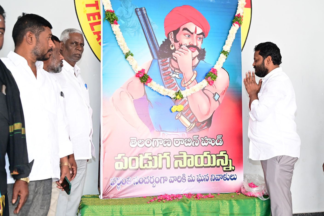 నిజాం రజాకర్లకు భూస్వాములకు వ్యతిరేకంగా పోరాడి పేద ప్రజల కడుపు నింపిన పోరాటయోధుడు పండగ సాయన్న అని మెదక్ పార్లమెంట్ కాంగ్రెస్ పార్టీ కంటెస్టెడ్ క్యాండిడేట్ నీలం మధు ముదిరాజ్ అన్నారు.పండగ సాయన్న వర్ధంతిని పురస్కరించుకొని చిట్కుల్లోని మత్స్యభవనంలో ఆ మహనీయుడు చిత్రపటానికి పూలమాల వేసి ఘన నివాళులు అర్పించారు.ఈ సందర్భంగా నీలం మధు మాట్లాడుతూఈ పేద ప్రజలు ఆకలితో అలమటించకూడదని భూస్వాముల నుంచి ఆహార ధాన్యాలు దోచి పేద ప్రజల కడుపు నింపిన మహనీయుడని కొనియాడారు. ఆకలితో అల్లాడుతున్న గ్రామాలలో పండగ సాయన్న అడుగు పెడితే వారి కడుపు నింపి పండుగ వాతావరణాన్ని తీసుకొచ్చిన ఘనత వల్లే సాయన్న కు పండగ సాయన్న అని పేరు వచ్చిందన్నారు.ముదిరాజ్ కులంలో పుట్టిన ఈ మహానీయుడు బంధుక్ ఎత్తి రజాకర్ల అన్యాయాలను ఎదిరించి ఎదురొడ్డి బహుజనులకు అండగా నిలిచాడని గుర్తు చేశారు.అలాంటి మహావీరుడు స్ఫూర్తితో భవిష్యత్తు తరాలు పోరాటాన్ని అలవర్చుకోవాలని పిలుపునిచ్చారు.