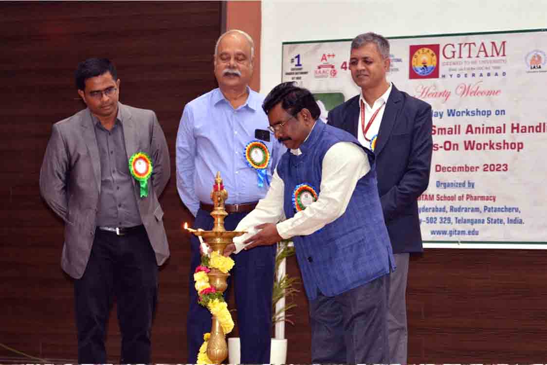 ప్రయోగశాలలో ఎలుకలు, కుందేళ్లు వంటి చిన్న జంతువుల నిర్వహణ, వాటితో వ్యవహరించే తీరుపై ఫార్మసీ విద్యార్థులకు స్వీయ అనుభవం అత్యంత ఆవశ్యకమని హెదరాబాద్ విశ్వవిద్యాలయంలోని స్కూల్ ఆఫ్ మెడికల్ సెన్సైస్ డీన్ డాక్టర్ ప్రకాష్ బాబు అన్నారు. గీతం స్కూల్ ఆఫ్ ఫార్మసీలో ఆధ్వర్యంలో బయోమెడికల్ పరిశోధనలో ఉపయోగించే చిన్న జంతువులను నిర్వహణ ప్రాథమిక పద్ధతులపై అవగాహన కల్పించడం కోసం నిర్వహిస్తున్న రెండు రోజుల కార్యశాలను బుధవారం ముఖ్య అతిథిగా ఆయన జ్యోతి ప్రజ్వలనతో లాంఛనంగా ఆరంభించారు.ఈ సందర్భంగా ‘క్యాన్సర్ చికిత్స కోసం ఔషధ ఆవిష్కరణలో ఆధునిక పోకడలు’ అనే అంశంపై ప్రసంగించారు. క్యాన్సర్ పరిశోధన, మూల కణాలు, మూర్ఛ, మెదడులో కణితి రంగాలలో జంతు సరిశోధన ప్రాముఖ్యతను ఆయన ప్రస్తావించారు. క్యాన్సర్ యొక్క సంక్లిష్ట స్వభావాన్ని నొక్కిచెబుతూ, ఇది జన్యు ఉత్పరివర్తనాల ఫలితంగా అసాధారణ, అనియంత్రిత పెరుగుదలను సంతరించుకుంటుందన్నారు. క్యాన్సర్ చికిత్సకు ఔషధాలు అందుబాబులో ఉన్నప్పటికీ, ప్రస్తుతం నివారణ లేదన్నారు. వ్యక్తిగత జన్యుపరమైన వ్యత్యాసాలకు అనుగుణంగాఆయా రోగులను బట్టి చికిత్సను చేయాల్సి ఉంటుందని డాక్టర్ బాబు పేరొన్నారు. జాతీయ పౌష్టికాహార సంస్థ (ఎన్ఐఎన్) యానిమల్ ఫెసిలిటీ పూర్వ సీనియర్ డిప్యూటీ డెరైక్టర్ డాక్టర్ ఎన్.హరిశంకర్ వివిధ జంతు జాతుల (ముఖ్యంగా ఎలుకలు, కుందేళ్లు, మేక పిల్లలు, కుక్కలు, కోతులు) వివరణ, నిర్వహణలను విశదీకరించారు. సీసీఎంబీ సీనియర్ శాస్త్రవేత్త డాక్టర్ ఎం.జె.ముహేష్ కుమార్, ఔషధ ప్రయోగాల కోసం బంతు నమూనాలను రూపొందించడం, జంతువుల ధోరణి, శస్త్రచికిత్సా విధానాలను వివరించారు. ఈ కార్యశాలలోపాల్గొన్న విద్యార్థులకు జంతువులను నిర్వహణ ప్రాథమిక పద్ధతులపై అవగాహన కల్పించారు.