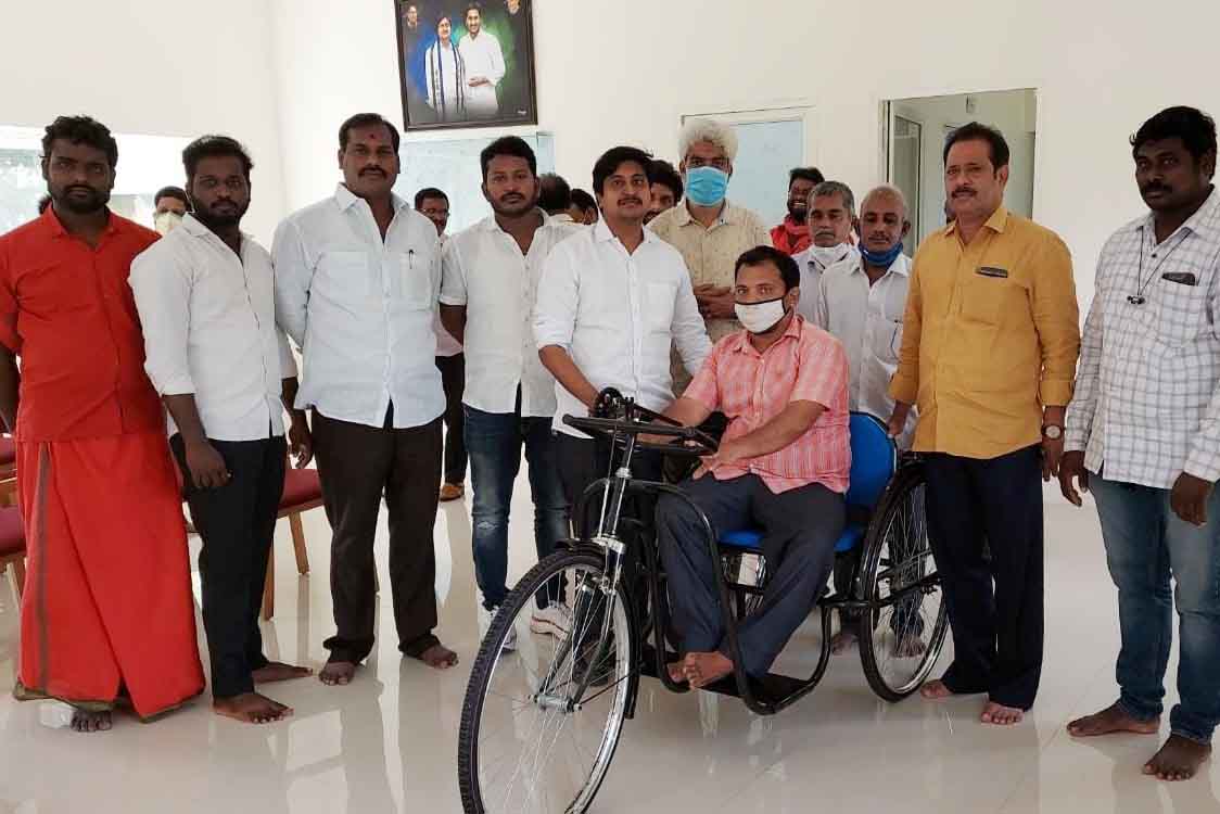 రాజమండ్రి రూరల్ నియోజకవర్గం కడియం మండలం పొట్టిలంక గ్రామం కు చెందిన అంకం వీరబాబు అనే వికలాంగుడు గత నెలలో రాజమహేంద్రవరం స్మార్ట్ సిటీ కార్పొరేషన్ చైర్మన్ రాజమండ్రి రూరల్ కోఆర్డినేటర్ చందన నాగేశ్వర్ గారు పొట్టిలంక గ్రామ పర్యటనలో ఉండగా అంకం వీరబాబు చందన నాగేశ్వర్ గారిని కలిసి తనకు వికలాంగుల ట్రై సైకిల్ కావాలి అని కోరారు.