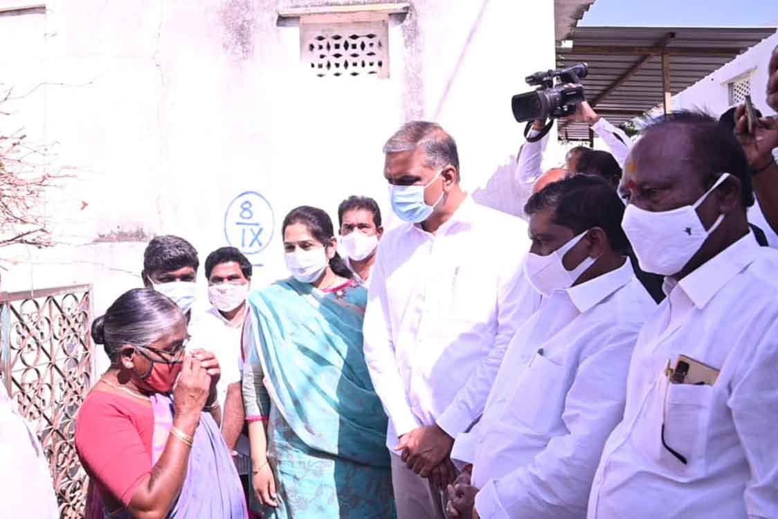 పటాన్చెరు నియోజకవర్గం భారతి నగర్ డివిజన్ పరిధిలోని ఇక్రిశాట్ ఫెన్సింగ్ ఏరియా లో జరుగుతున్న ఇంటింటి ఫీవర్ సర్వేను ఆదివారం ఉదయం రాష్ట్ర వైద్య ఆరోగ్య శాఖ మంత్రి తన్నీరు హరీష్ రావు స్థానిక శాసనసభ్యులు గూడెం మహిపాల్ రెడ్డి, భారతి నగర్ కార్పొరేటర్ సింధు ఆదర్శ రెడ్డి లతో కలిసి పరిశీలించారు. ఎవరూ ఆందోళన చెందాల్సిన అవసరం లేదని కరోనా థర్డ్ వేవ్ ను ఎదుర్కొనేందుకు రాష్ట్ర ప్రభుత్వం సిద్ధంగా ఉందని తెలిపారు. రాబోయే రెండు రోజుల్లో రాష్ట్ర వ్యాప్తంగా 100% ఫీవర్ సర్వే పూర్తవుతుందని తెలిపారు. కరోనా లక్షణాలు ఉన్న వారికి హోం ఇసోలేషన్ కిట్లు అందించడంతోపాటు, పరిస్థితి తీవ్రతను బట్టి ఆసుపత్రికి తరలించడం జరుగుతుందని తెలిపారు. ఈ సందర్భంగా కాలనీలో నిర్వహిస్తున్న ఫీవర్ సర్వే తీరును వైద్య అధికారులను అడిగి తెలుసుకున్నారు.