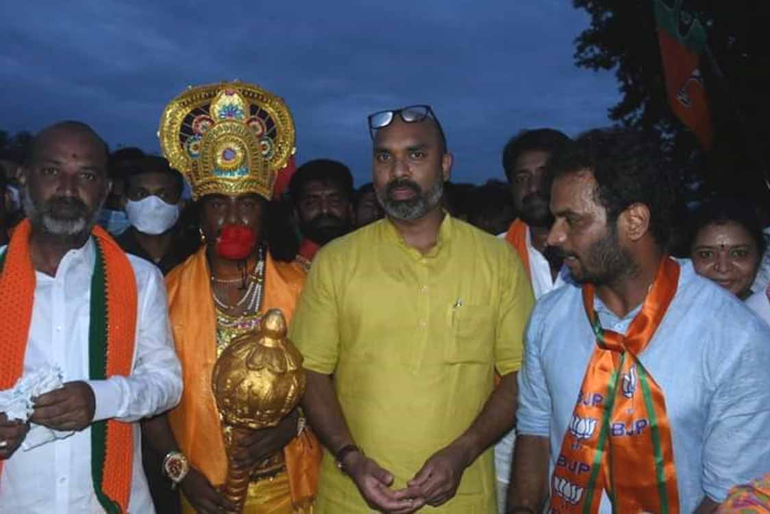 బండి సంజయ్ యాత్రలో హనుమంతుడి వేషాధారణతో ఆకట్టుకున్న గోపి